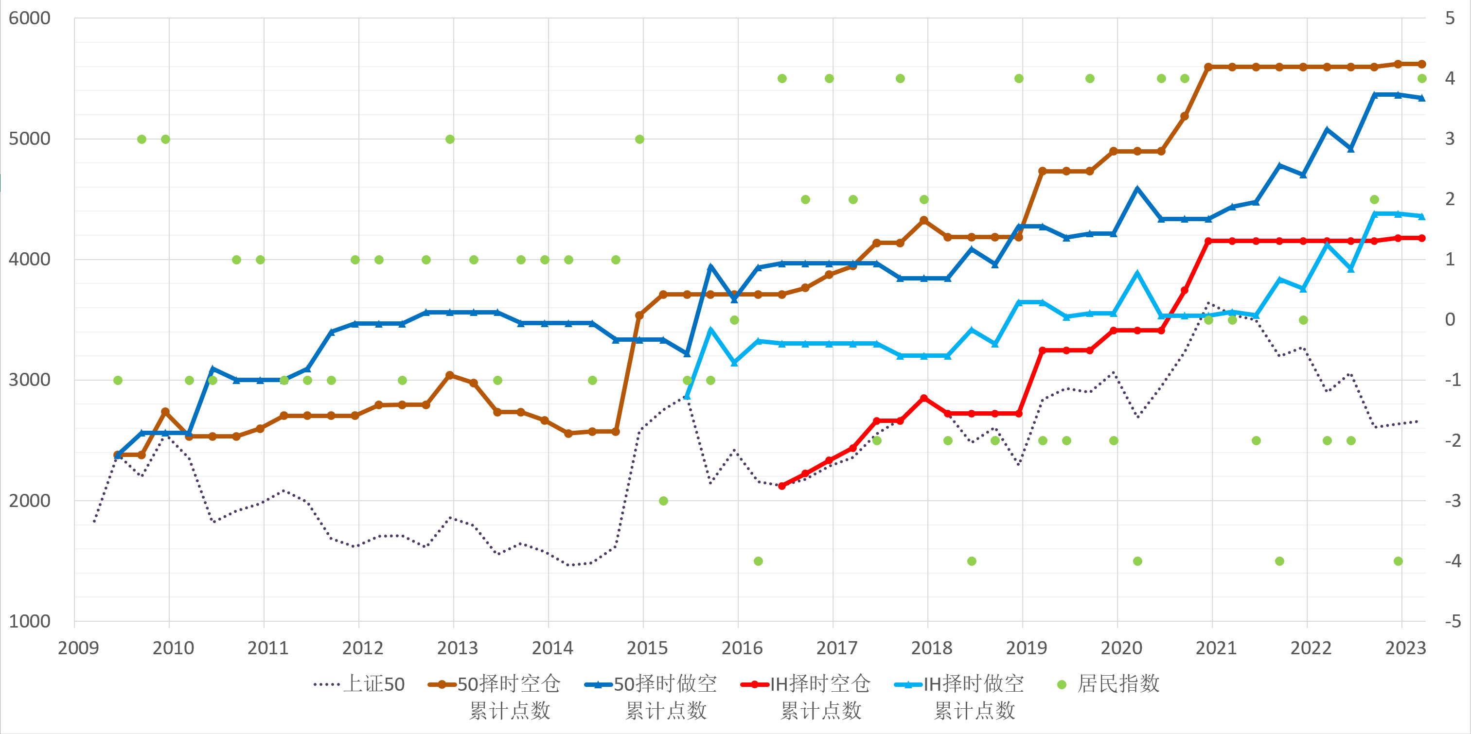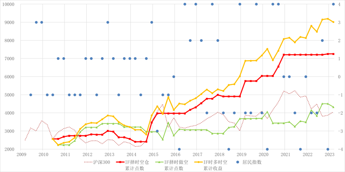 当累计值为正,则做多 Wind 全 A 指数,否则观望。
