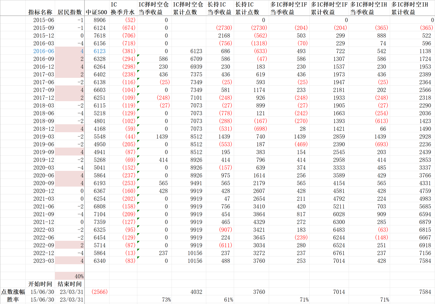 非常有质量的帖子,感谢无私分享。但是有几点担心:1.IC的贴水可能再也回不去年化10%,日积月累少了很多收益。2. 按照季度调仓一次,一年4个样本,看似2015年开始,总样本也只有32个,担心不牢靠。3. 如果基于人口、经济的大盘不好了,没有慢牛了,衰退了,恐怕出现打的亏损。4. 其实,基于一季度是得4分,我在4月中旬加了一张IC,然后就没有然后啦。慢慢熬,希望2季度不要让我失望。只有4%,另外蛋糕会越来越小的,GDP会萎缩,陷入衰退