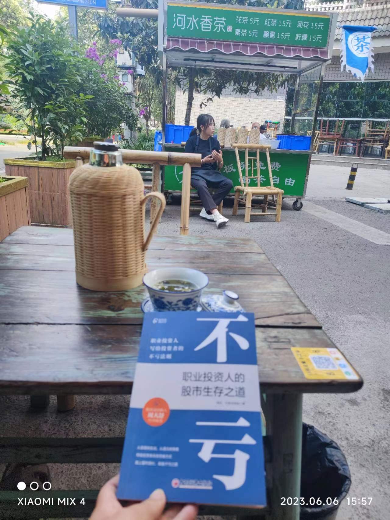 今天,书已经到货,下午开盘时间我先抽空翻了一会儿。收盘后,我又拿上书,走到我最喜欢的河水香茶店,泡上一杯5元的花茶,细细的阅读起来。