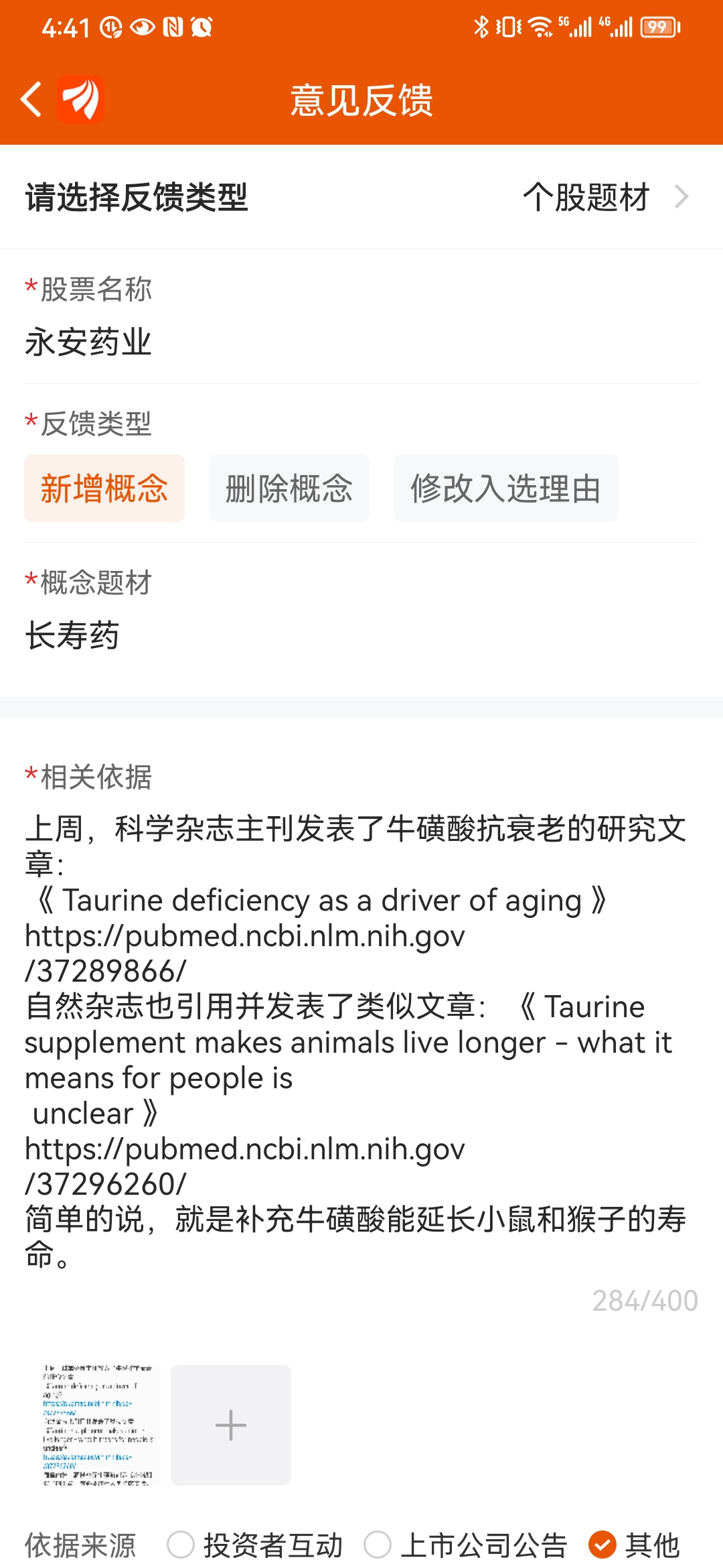 小赌永安药业上周末,我做了一些功课,今天开盘买了一些永安药业。 永安药业财务指标较为一般,不过其牛磺酸销量约占50%的全球市场份额,具备龙头地位。上周,科学杂志主刊发表了牛磺酸抗衰老的研究文章:《Taurine deficiency as a driver of aging》https://pubmed.ncbi.nlm.nih.gov/37289866/自然杂志也引用并发表了类似文章:《Tau...微信指数已经下降了,6.9号是最高值。