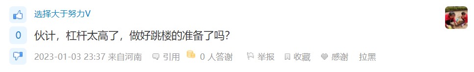 2、另外就是针对那个人,人家这里开帖子分享人家自己的投资经历,说实话就不是让你来嘲讽的,人家这是让你来“交流”(也可以难听点说叫来恭维他的)。也就是在网上你敢这么肆无忌惮,如果换线下你这么跑到别人的地盘大放厥词,人家不直接给你两耳巴子就不错了。要在合适的地方做合适的事情,装逼你可以自己开个帖子装。