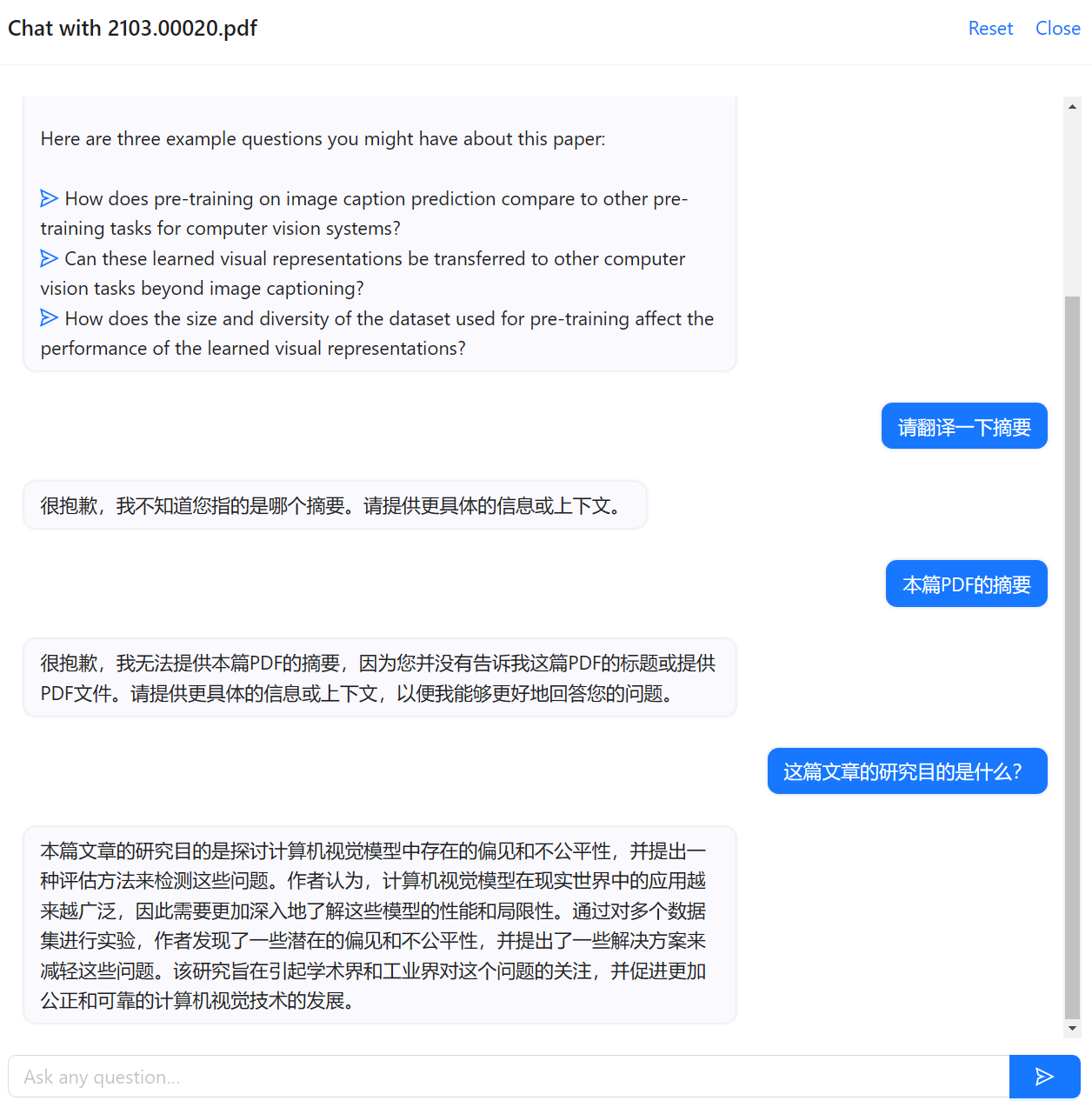 用起来很简单,拖动上传PDF,然后就可以和你的AI研究员一起讨论了。