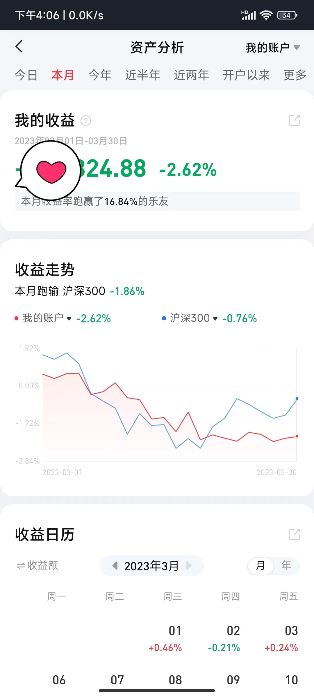 2023年3月第4周小结本周收盘净值1.015比上周下跌0.01,最近连续小亏,亏得我都有点麻木了。北交有所反弹,但在康乐凯雪安达亚锦等品种的连续暴击下我仍然亏损累累,惨啊。转债约半成仓操作不多,还是看不到明显的机会。北交所两成小半仓不变,本周略有反弹,希望这次是真的见底了吧。新三板一成半仓略加,下跌中继续小幅加仓了亚锦科技。A股约一成仓,有齐翔南钢千禾皇台天马ST及少量短线品种。港股半成仓基本...原来你就是孔曼子啊*