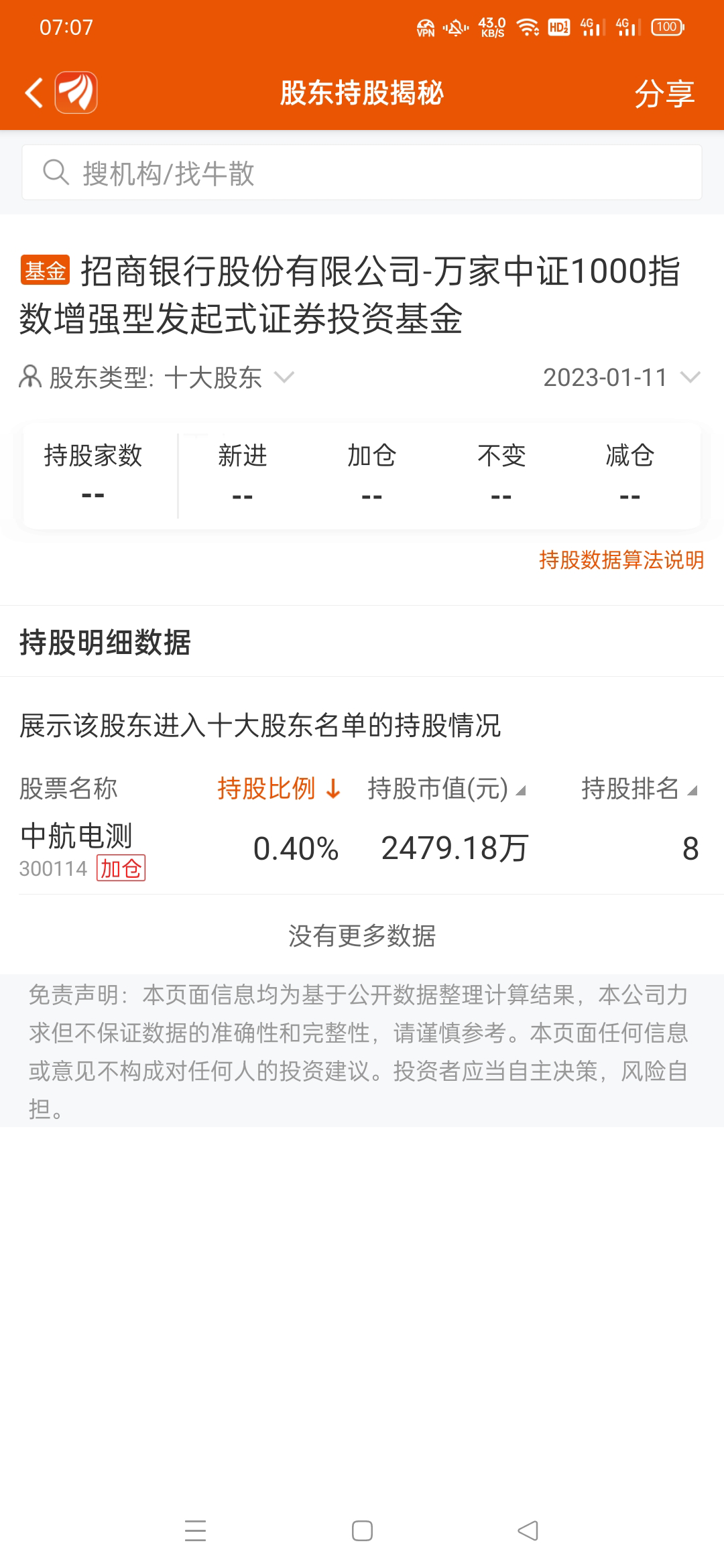 (1)中航电测的三季度报告中显示万家中证1000(005314)持有了153万股。005314持有总仓位为:10.58元*153万股 = 1618.74万。