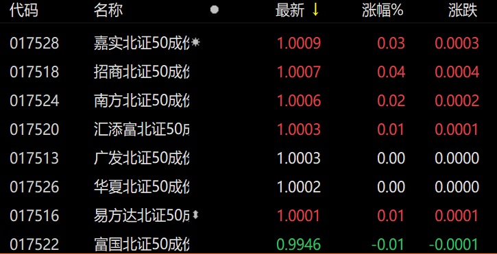 北证50可以大致看作一支市值千亿,PE 20倍,营收利润增长3-5成,日成交2亿,且有人要在6个月内增持20多亿的股票,短期内无利好刺激可能跑不赢大盘,但多半易涨难跌,拿着是很放心的。从净值看,富国基金显然已建仓了一些,其他几支目前还不太明显,慢慢观察吧。广发,招商,富国今天净值看可能都建仓了。这两天北交所波动太小,看不出来建了多少。但是