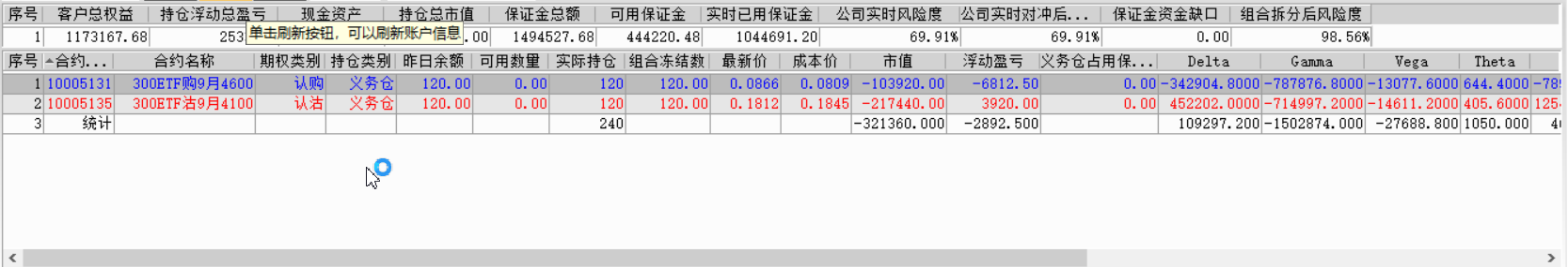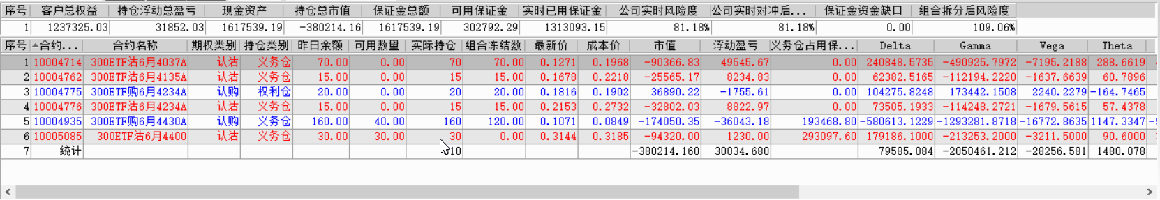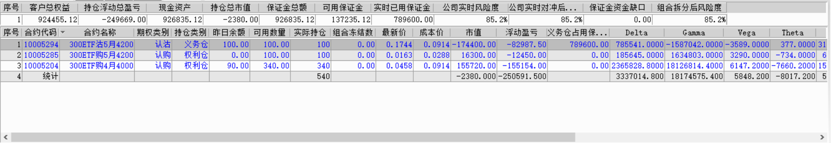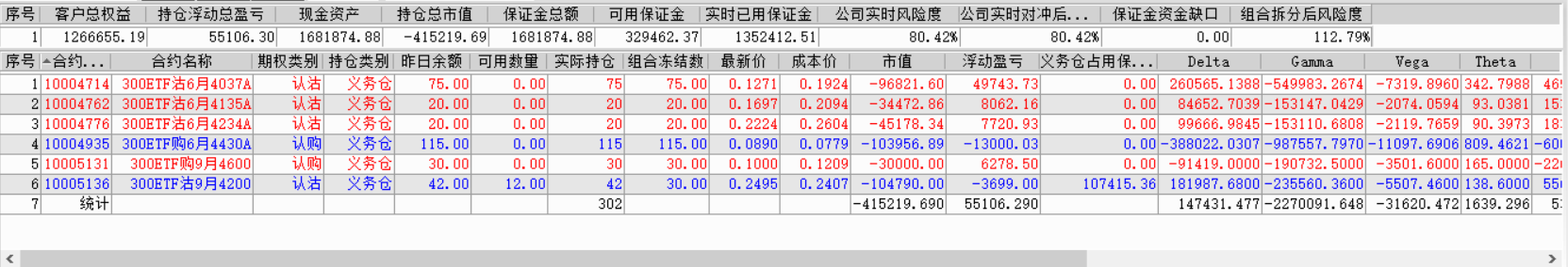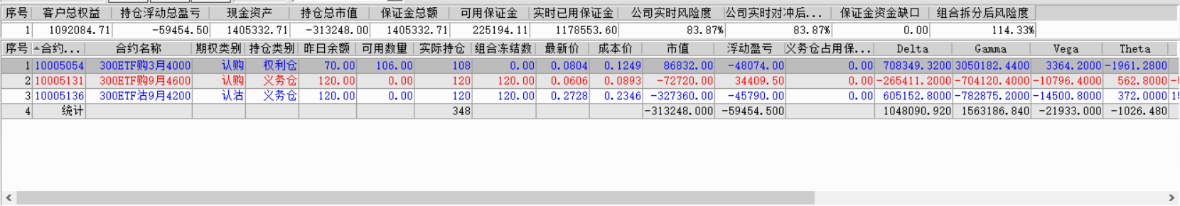 今天delta达到+333.7014远超100的满仓状态,(运气实在是太差了,每次稍有闪失就会出现大亏损),期待大盘在此位置底背离探底成功,跌破30百分位加仓到70张,跌破25百分位加仓到100张(今天已经完成100张的构建),跌破PE值(今天10.71)加仓到100张,跌破PE值10.25加仓到120张(120心理压力太大,维持固定100张),然后选择delta进攻(应该是在大盘的绝对低位底部,只输时间,不输价位)维持固定合成多头100张持仓(长期持仓保持不变,目前持仓100张达到3.33倍杠杆,假设510300ETF的长期年华收益率为5%+2%的模式,3.33倍杠杆就可以达到23.3%的年华收益率。)。