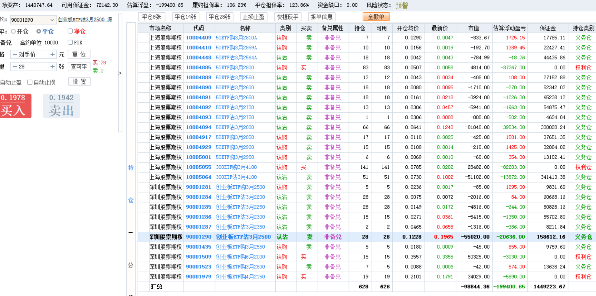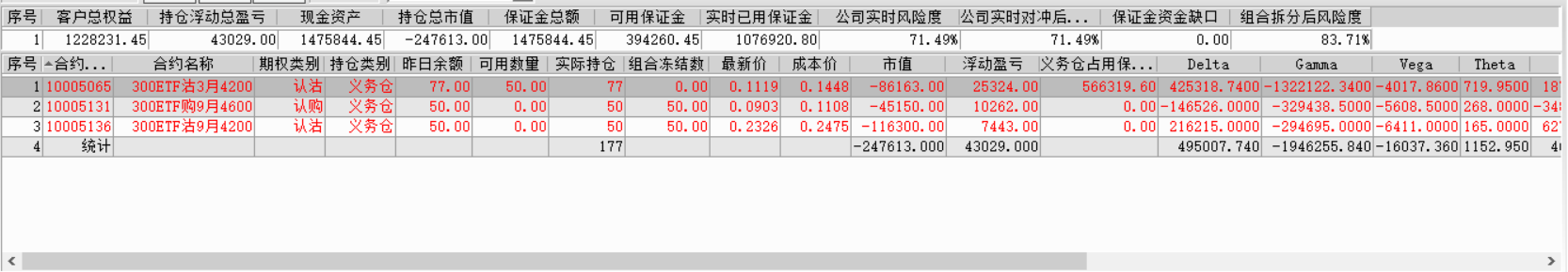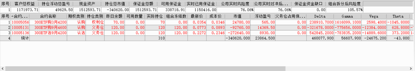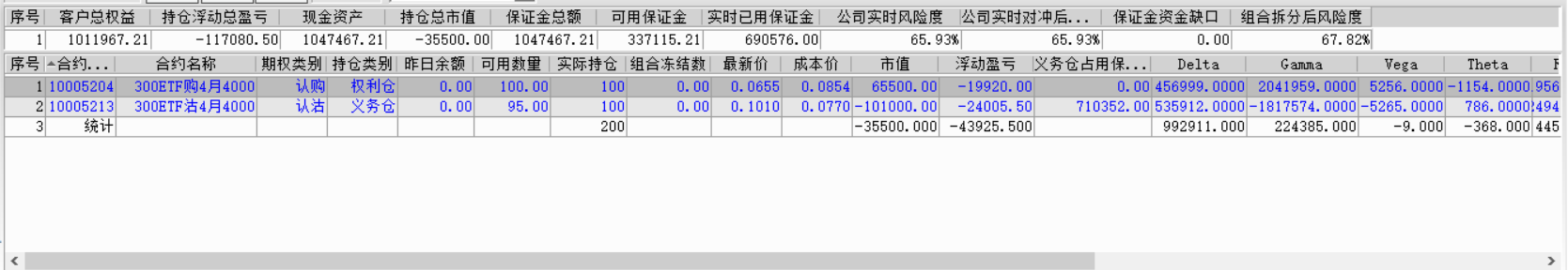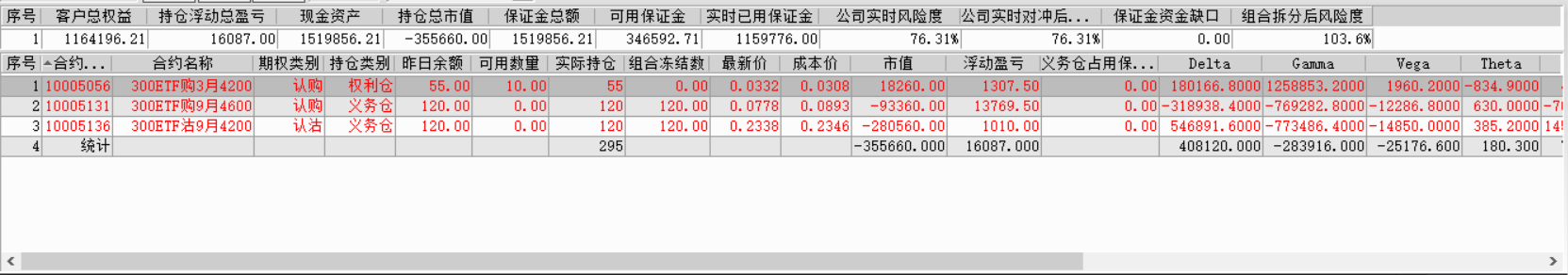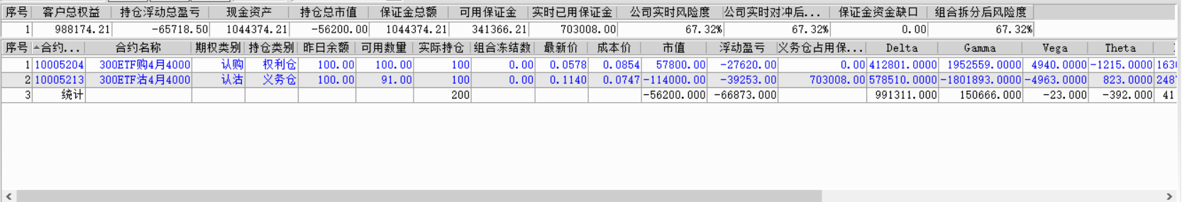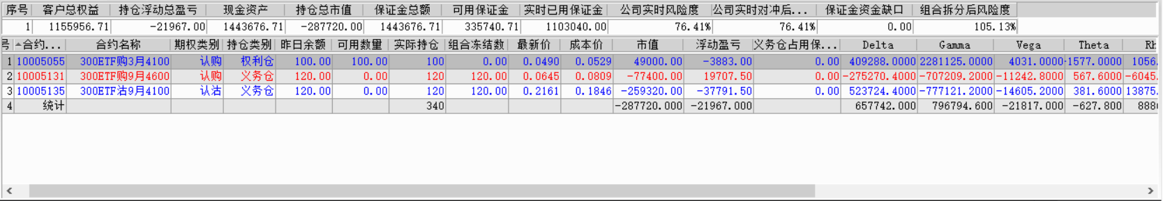 今天delta达到+65.4670持续低于100的满仓状态,(运气实在是太差了,每次稍有闪失就会出现大亏损),期待大盘在此位置底背离探底成功,跌破30百分位加仓到70张,跌破25百分位加仓到100张(今天已经完成100张的构建),跌破PE值(今天10.71)加仓到100张,跌破PE值10.25加仓到120张(120心理压力太大,维持固定100张),然后选择delta进攻(应该是在大盘的绝对低位底部,只输时间,不输价位)维持固定合成多头100张持仓(长期持仓保持不变,目前持仓100张达到3.33倍杠杆,假设510300ETF的长期年华收益率为5%+2%的模式,3.33倍杠杆就可以达到23.3%的年华收益率。)。