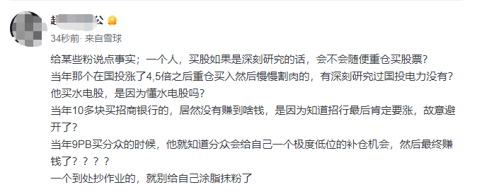 路过,想起来前几天的一个热帖,jsl的很多朋友还非常推崇这个人,就顺路搬过来,图片上说的那位,我感觉他的名片上写这些title比较合适,职业心理按摩师、作家、知名博主,甚至你给他安一个草根心理学家的名头我都不介意,毕竟他非常理解粉丝的心态和想法。但是他和价值投资真是没半毛钱的关系,虽然我也不是。有知道这是说的谁吗