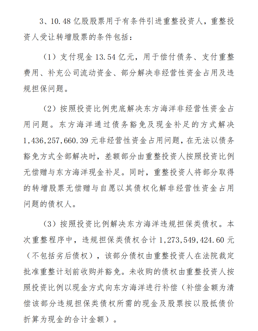 战投导入现金13亿,认购了转增股本,然后又拿出部分现金偿还。而解决违规担保和资金占用的方案里面,都是写着参照普通债权进行现金偿还和以股抵债的,就单说现金偿还8%这部分,不就相当于算了两遍?