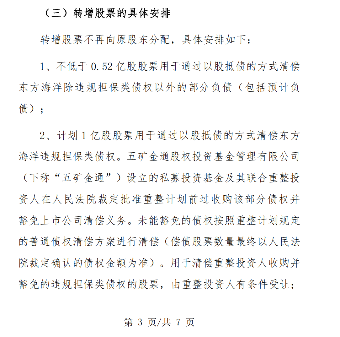 东洋这东西,也算是个神奇的方案了,又是整花活解决违规担保。重整战投与违规担保债权人签订协议,受让违规担保债权,然后重整战投对违规担保债权进行豁免。可是关键是,公告的债权转让协议里,违规担保清偿还是和普通债权一样,现金+股票而已,只不过由投资人先拿到股票,再转给违规担保债权人。最后其实变成了,重整投资人拿了11.38亿股,支付5.69亿元,每股0.5元;普通偿债0.52亿股,每股12元;违规担保未...
