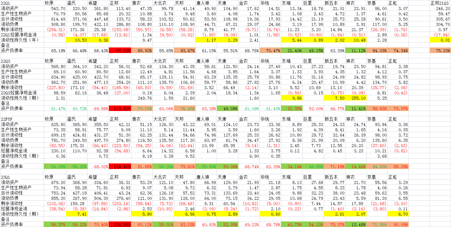 2)大北农资金流动性差,我跟踪的两项关键指标:剩余流动性和经营净现金流双负,正邦东瑞之外的唯三;