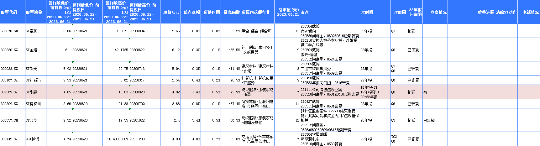 37家是五月ST年度正常低潮期创出的新低,月末集中为主(全筑就是其中之一)