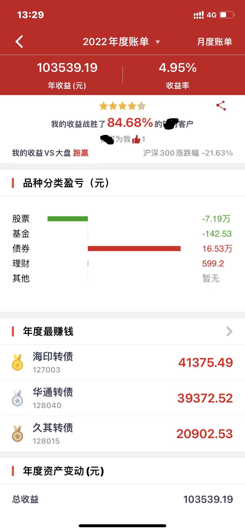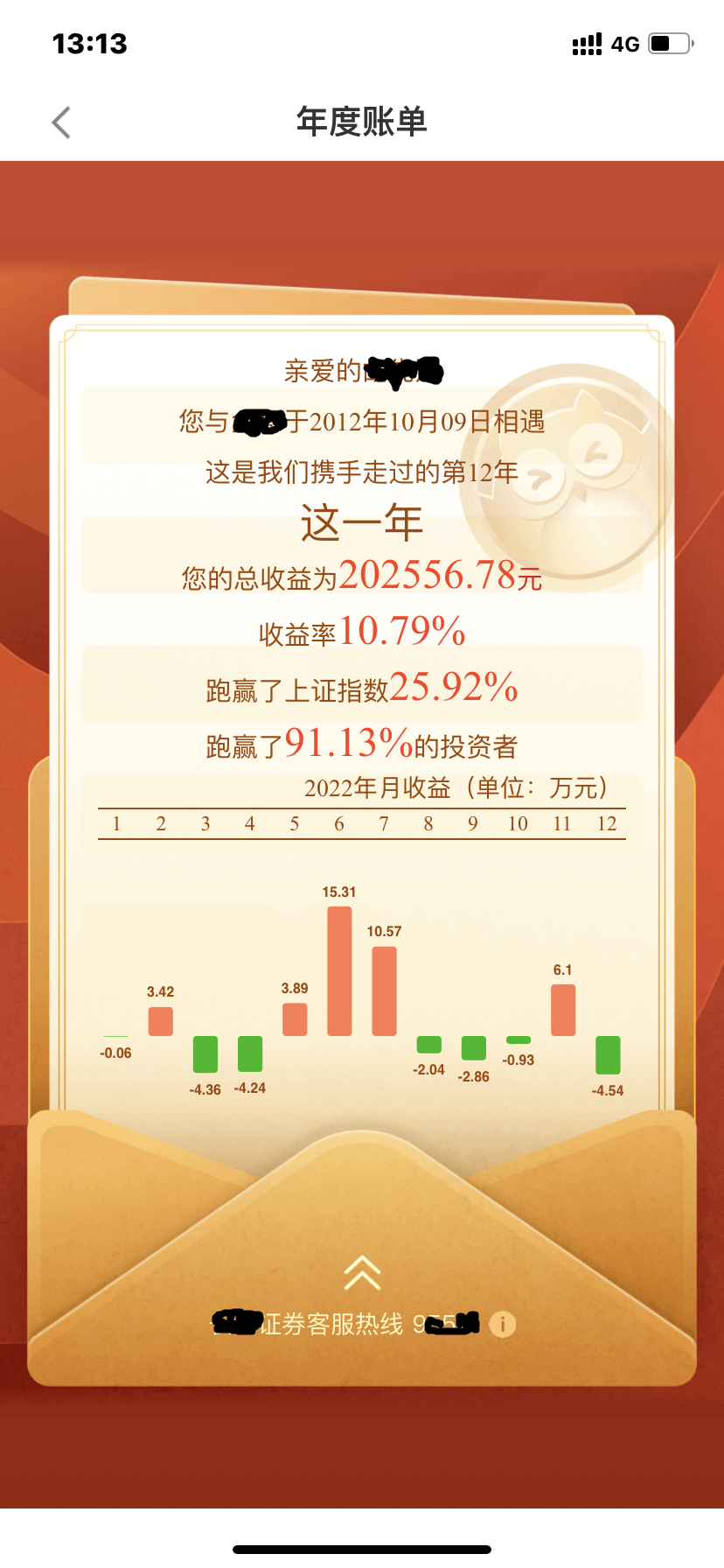 打开手机炒股App软件,被券商发布的2022年度收益报告感动了,去年竟然赚了那么多?可看看帐户,心却凉了一半,我赚的钱去哪了?就想知道我是被发财?被安慰?被封神?还是被忽悠?