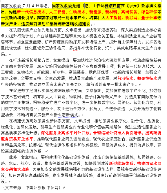 国家发改委7月4日消息,国家发改委党组书记、主任郑栅洁日前在《求是》杂志撰文