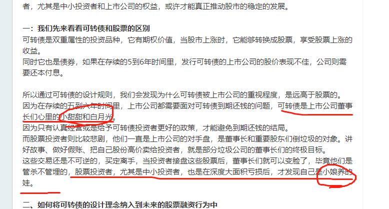 股市也同样如此,竟然大A是一个不值得投资的市场,那就在这个不值得投资的市场找到一点适合自己投资的东西即可。不一定要是股票,可能是可转债也可能是其他。