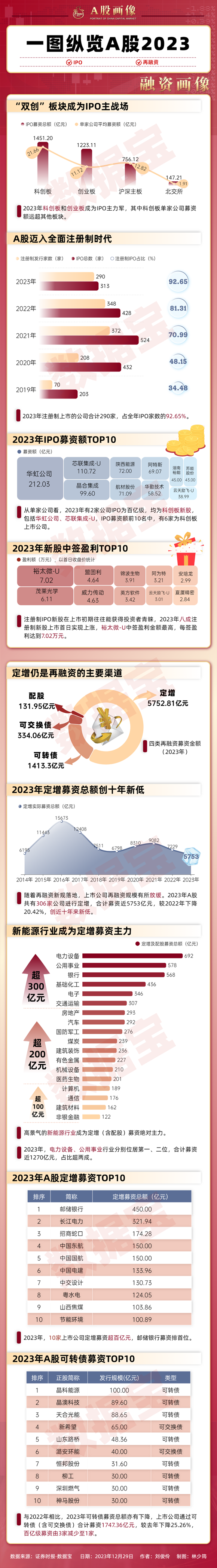 2023年融资画像:IPO和再融资规模双降 新能源行业再融资金额居首