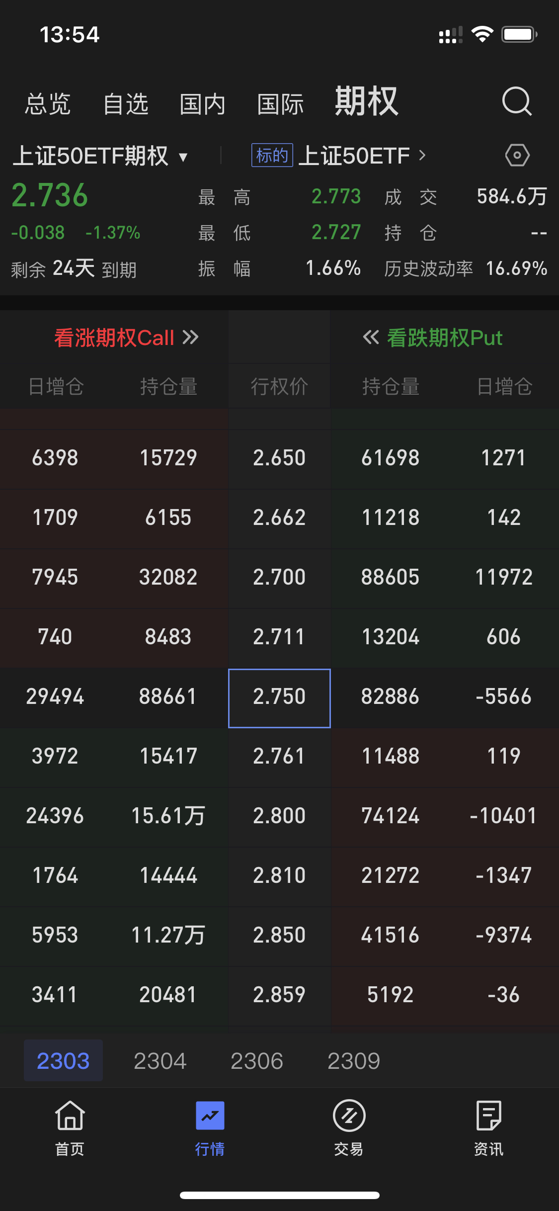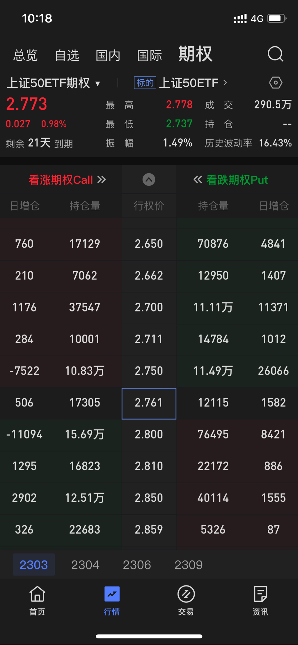 我来帮楼主答一下,2.8call的持仓量增加说明有较多人认为在3月交割日时上证50ETF涨不到2.8。
