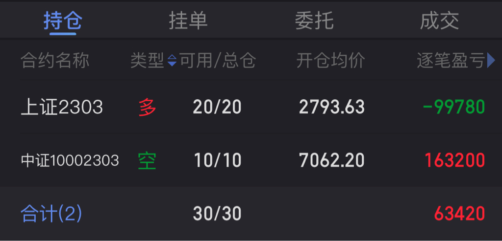 小丑又来刷存在感啦?上3300点加回IM空单就是一上3300就立刻加回吗,呵呵。IM空单是对冲IH风险用的,IH多单是一直没动。一顿操作猛如虎,你猜怎么着?IM空单都是盈利的,气不气,这不今天又涨上来了,又白得几十点做空空间,先存着。2月16发帖开仓多IH空IM的时候开了个模拟观察仓一直没动,到今天还是盈利的,懒人不动也是躺赢。
