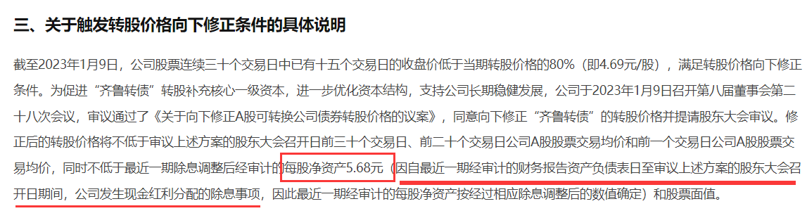 齐鲁银行22年年底发行,转股价5.87元,21年底净资产是5.86元,基本是贴着净资产发行了