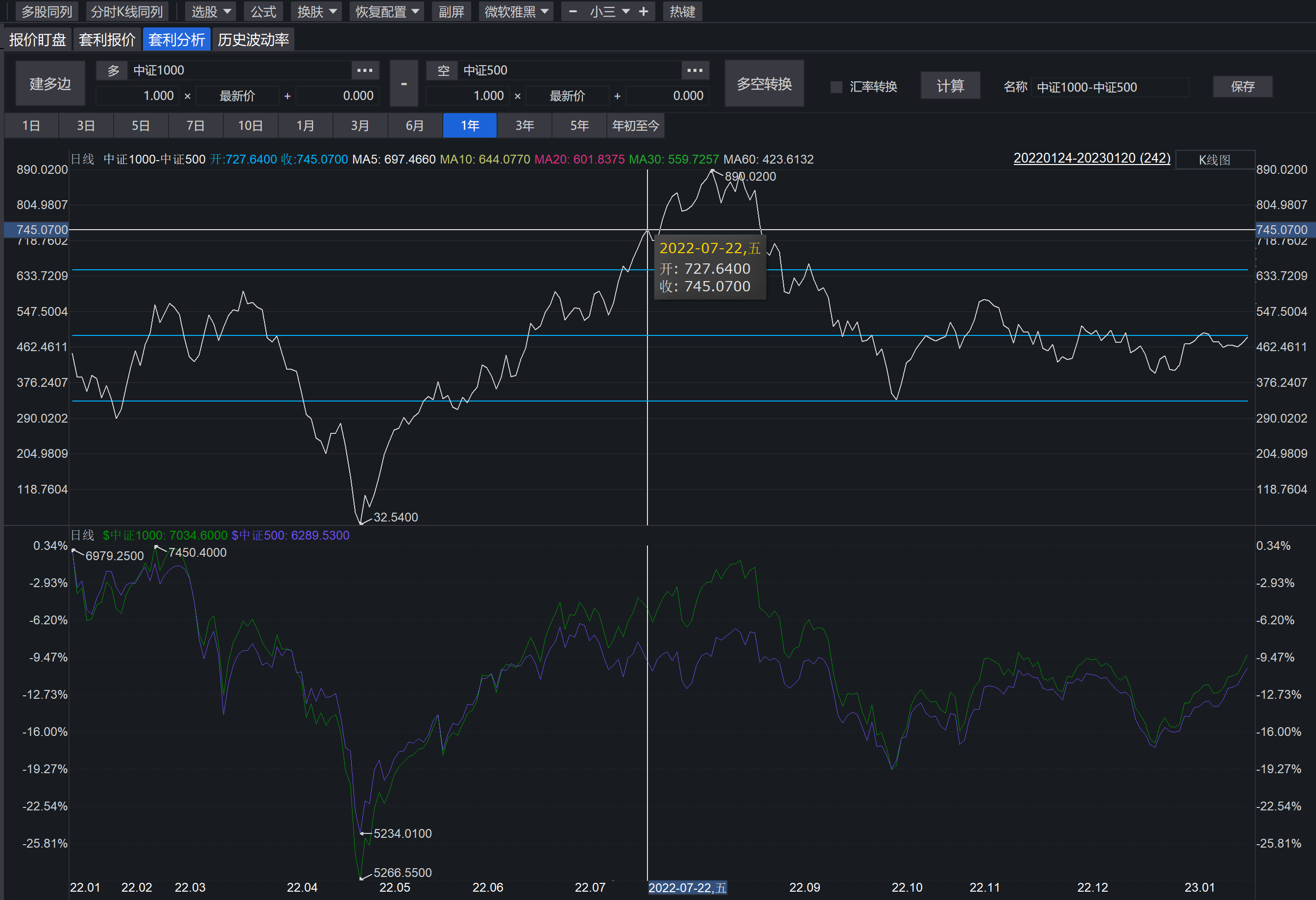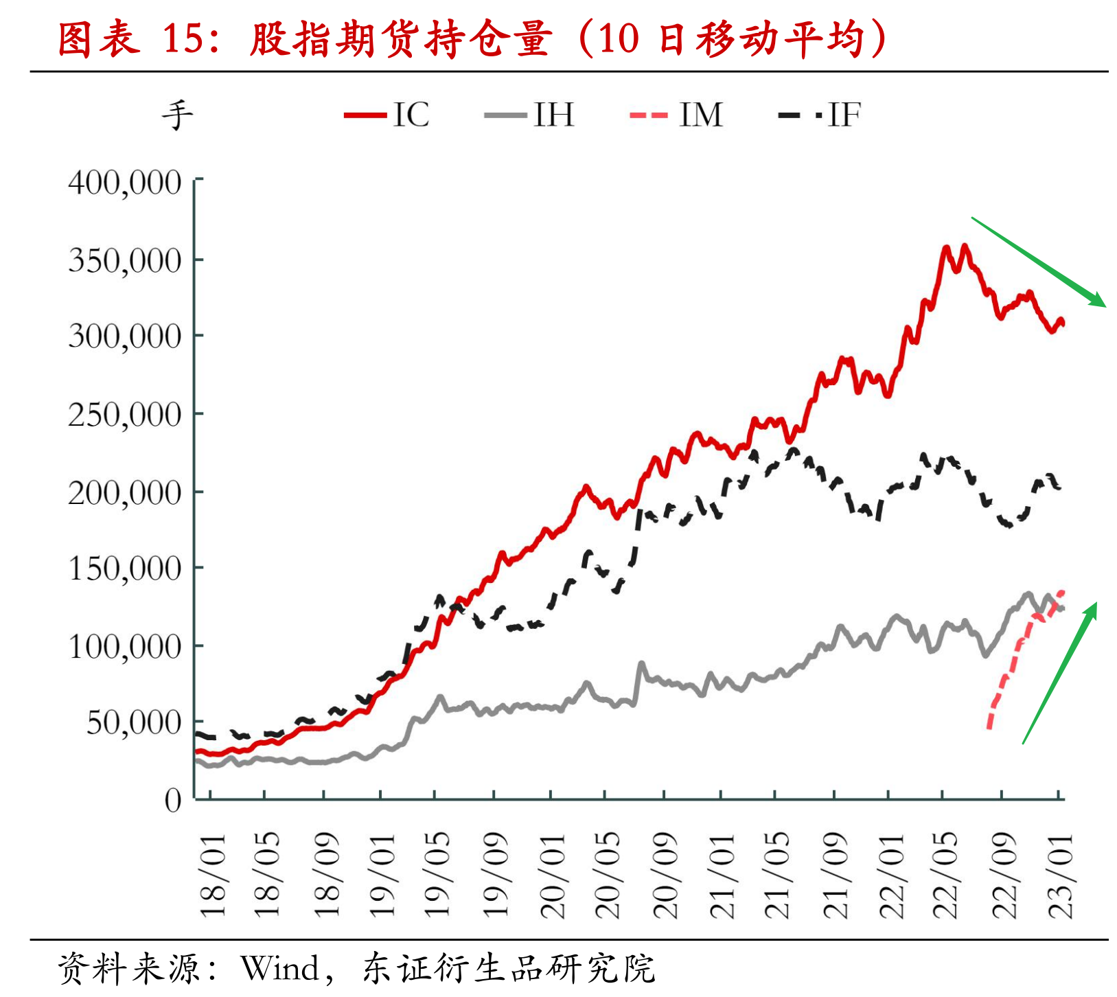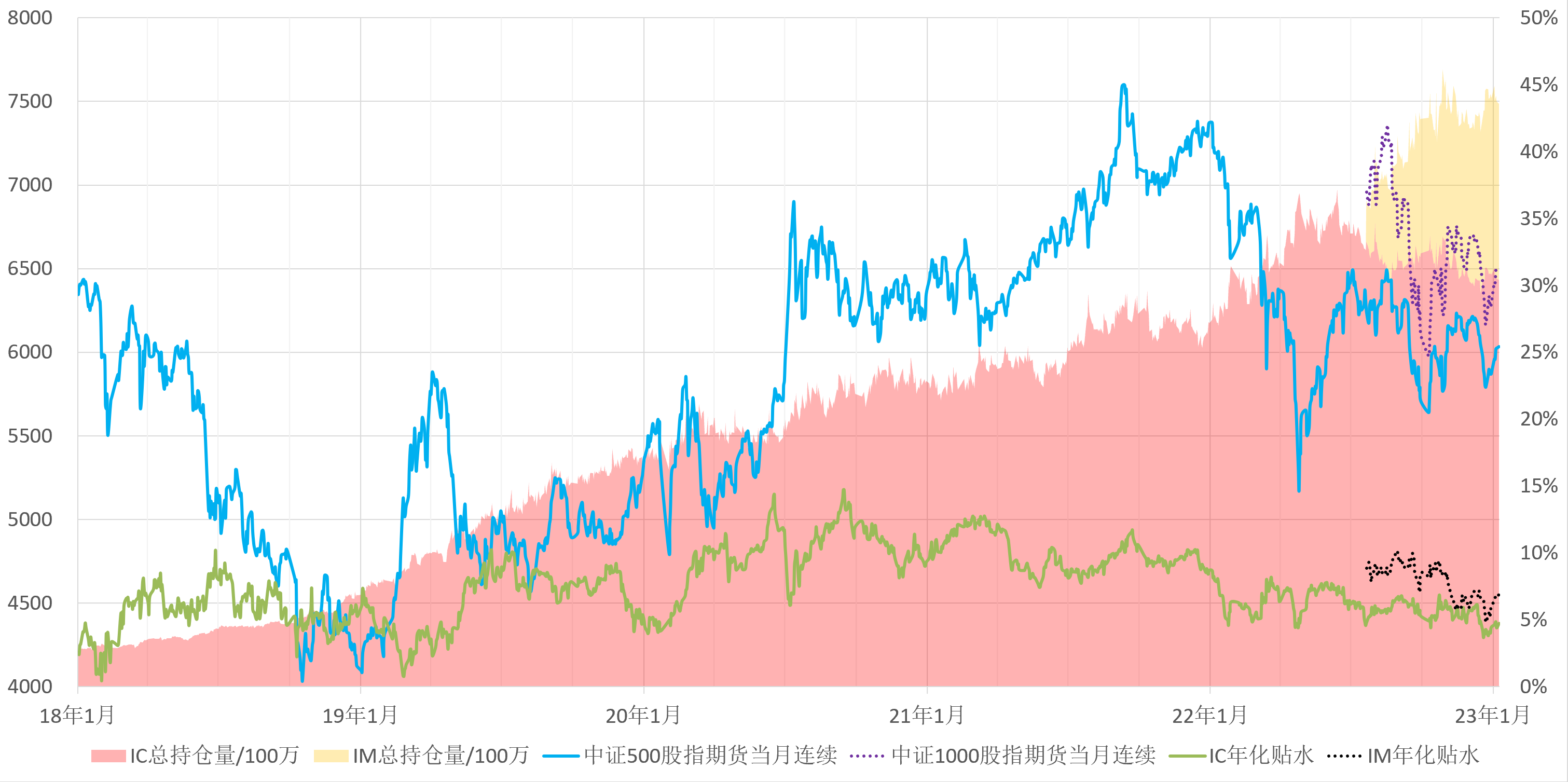 2022年7月后,IC持仓量显著下降,但是加上IM,总持仓量也还是持续增长,不少IC持有者换仓到了IM。