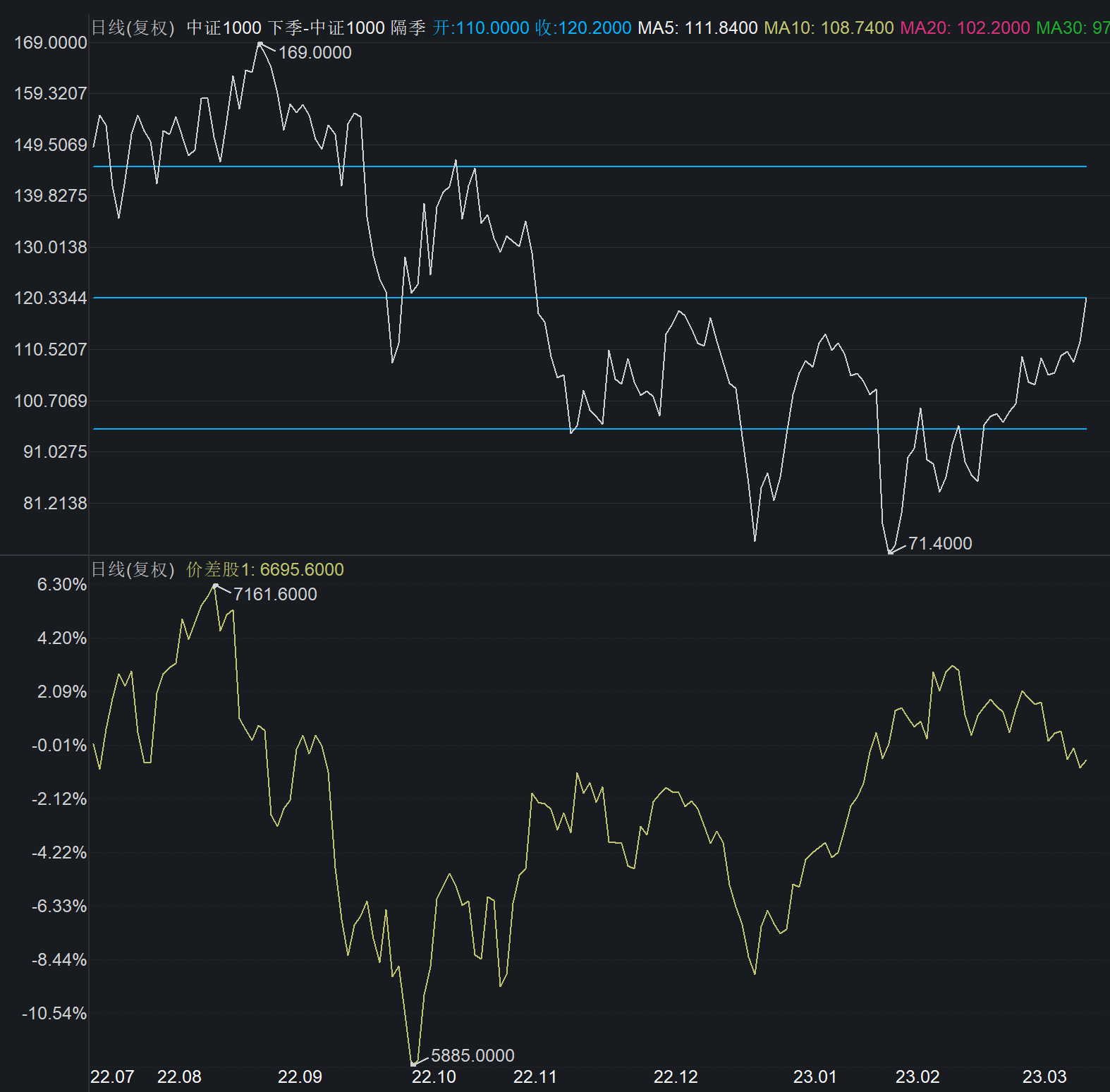 年中的时候贴水最小,这个时候隔季贴水也就只有六七十个点