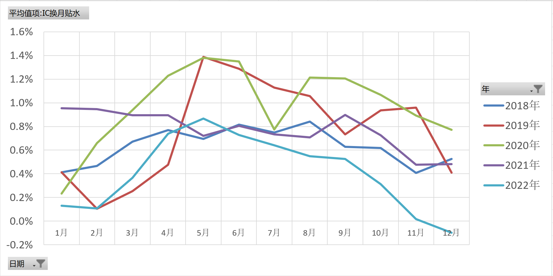 呈现出非常明显的年末年初贴水小,年中贴水大的特点。