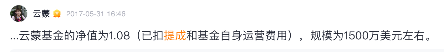 云蒙资产峰值2kw,然后把基金搞到0.2左右,个人还有1千多万资产。只要基金搞到0.3,个人就回本了。这绝对是高杠杆低风险的典范,不得不服。