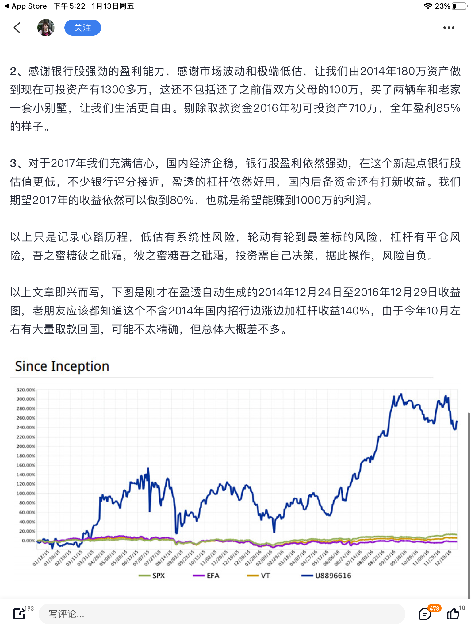 16年赚了好多钱,到17年峰值赚过两千万,当时金融资产是我的n倍(n>=4)