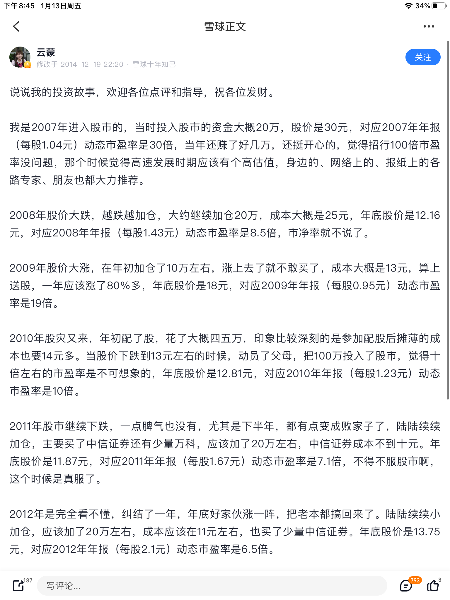 雪球大V云蒙,目前有40万粉。我觉得她/他是我在雪球上,跟着学到最多的人,没有之一。