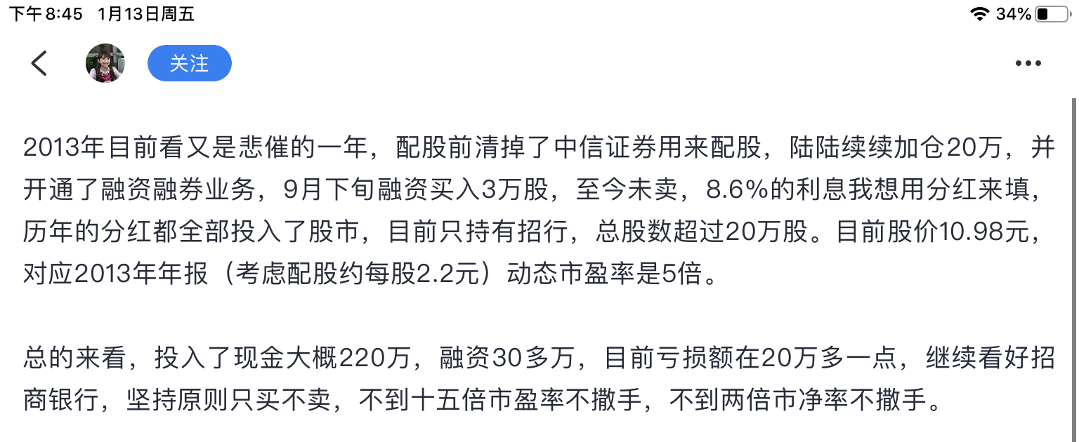 我最大的疑惑在于,她或她老公在人民银行干过,怎么对银行股认识还这么肤浅呢?还敢上杠杆重仓?不知道银行股真实坏账率多高吗?不知道银行股普遍90%的资产负债率吗?不知道银行股一味追求规模而不是质量吗?