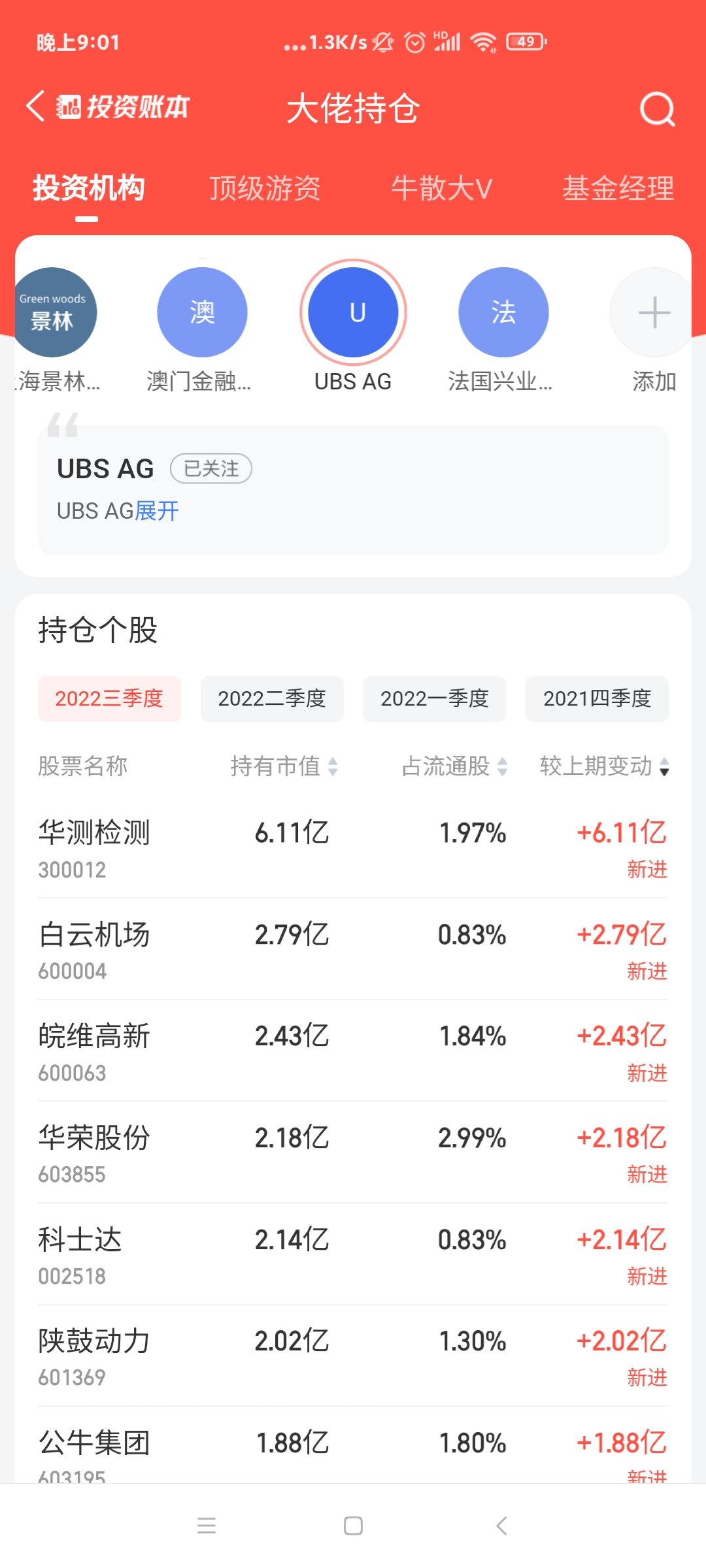 瑞银三季度增仓的白云机场因为困境反转在4季度走好,现在最好等公司财报和基金年报