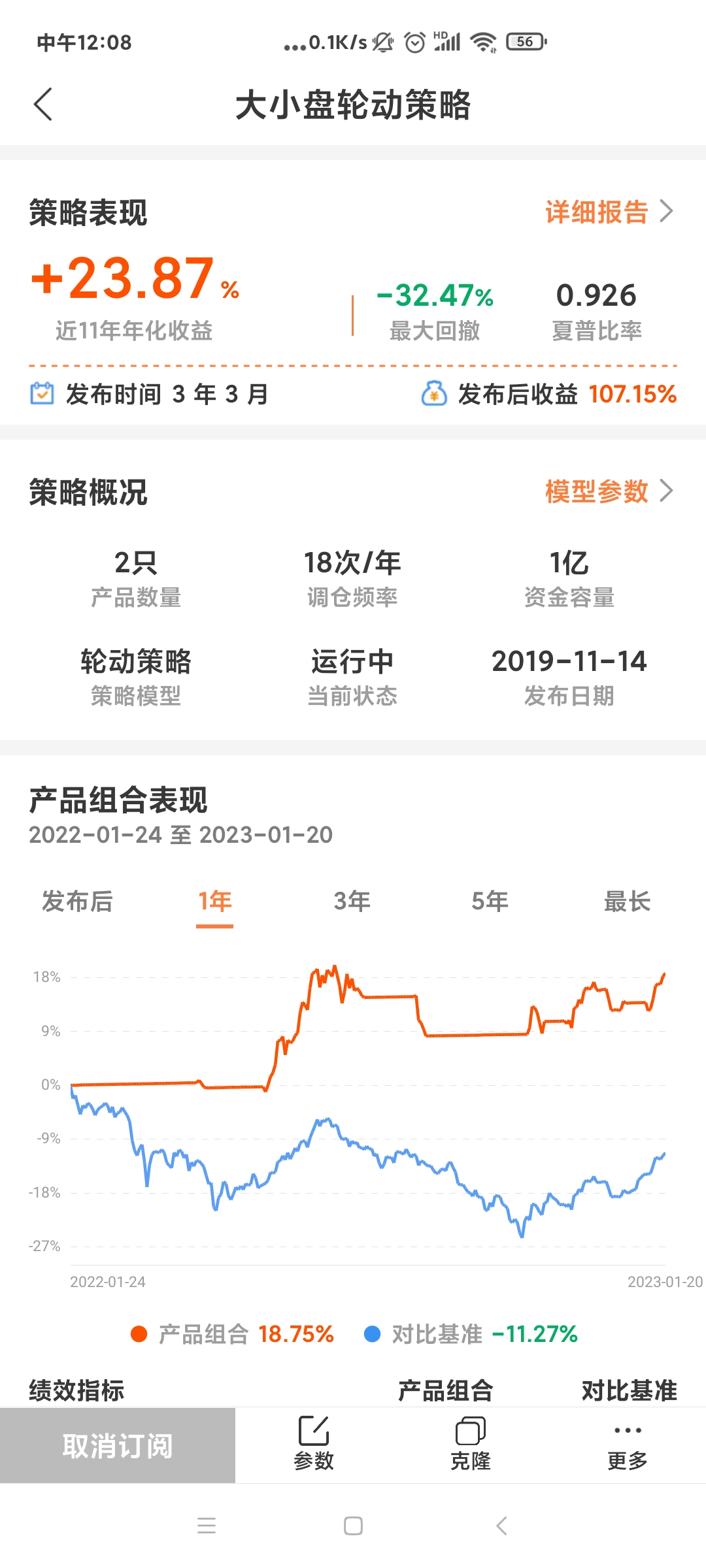 关于基金轮动,我觉得根据指数基金和货基如银华日利按20日涨幅排序且当涨幅大于2%时选择股基,股基20日跌幅大于2%时选择货基,仍是比较好的市场择时策略,回测如图,最新持有创业板指,持仓感受好于一直持有蓝筹,缺点是一年内换仓多了点
