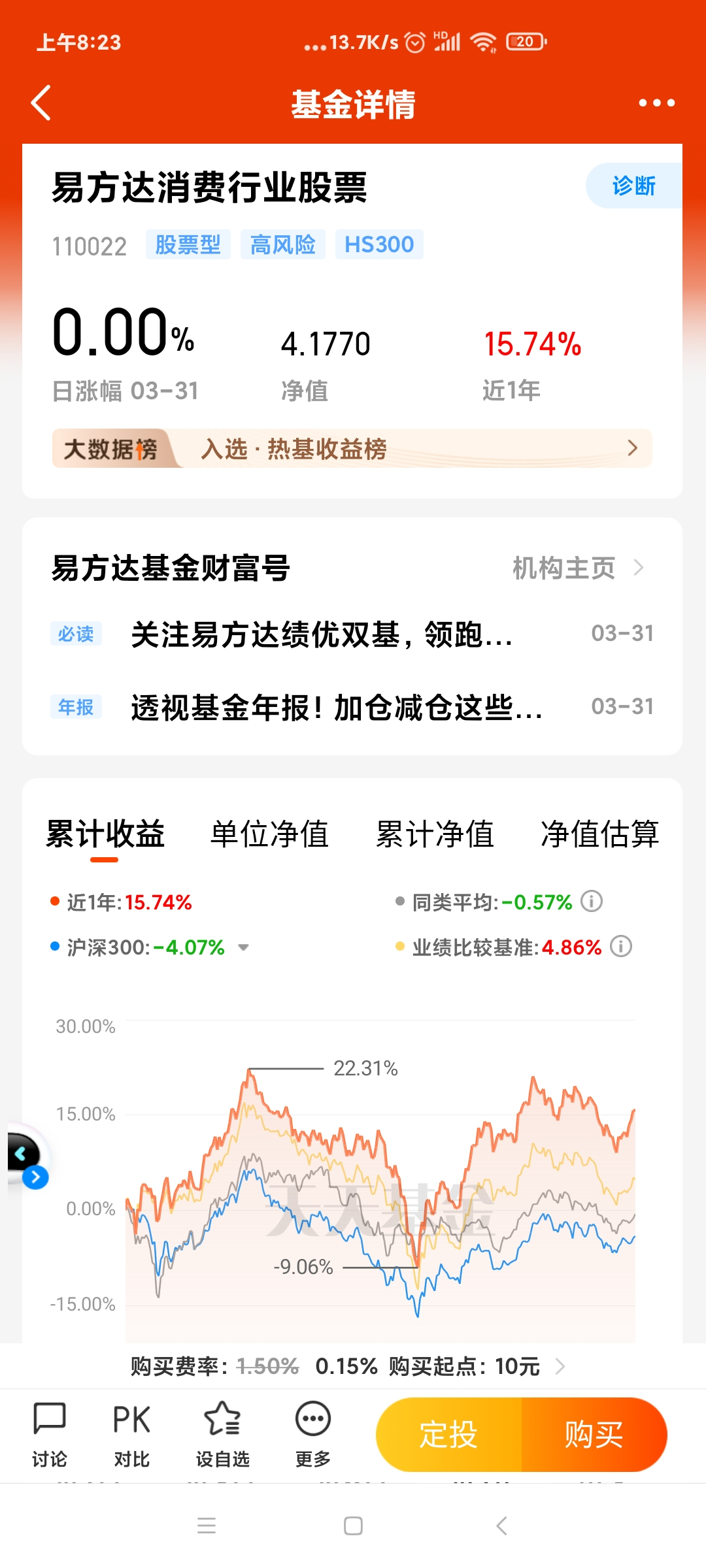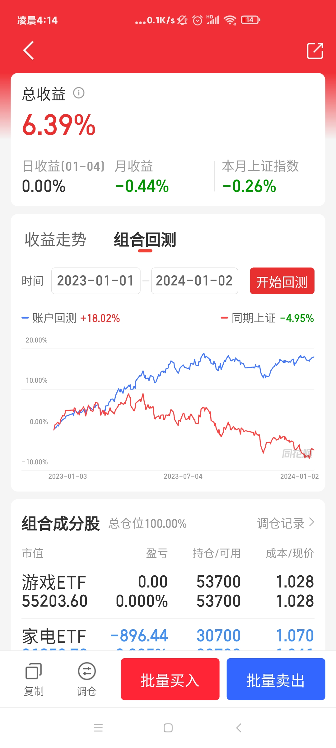 时问来到了兔年,沪深300已来到4000点附近,恒指中概在22年已挖过大坑,从年初定投基金,无论上涨下跌,寻找一个高点找波动的钱,套住了相信选的基金经理的能力,和不高的估值解套应是没问题的,行业上食品饮料建材中概纳指法国cac40可考虑,当然还有越南etf,用模拟盘找灵感,用实盘和对标指数差异找差距,并向集上老师学习