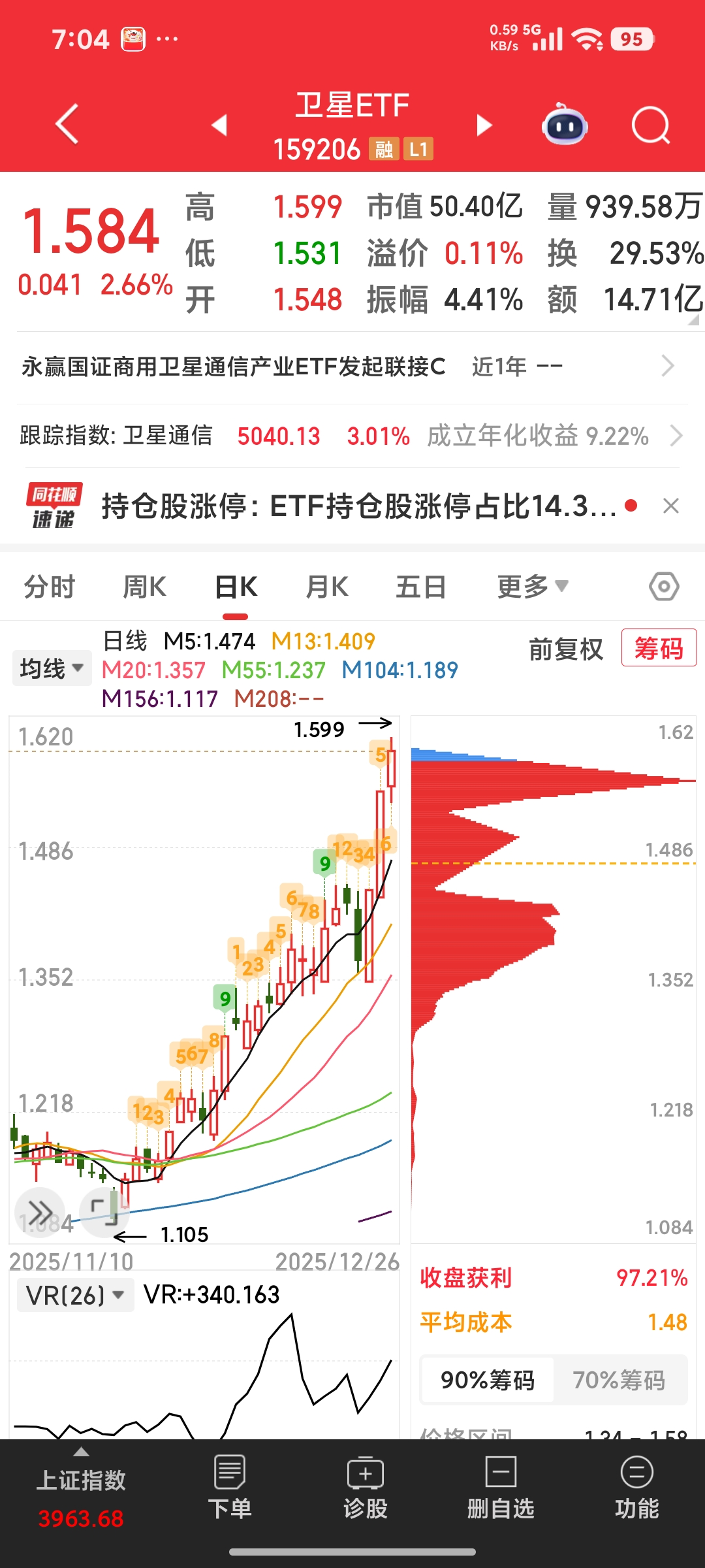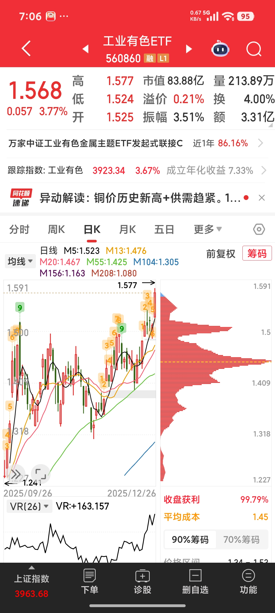 节后跟随某球大v操作了中远海控,今天已落袋为安,海控逻辑是红海危机导致欧线集装箱船绕路非洲南端而造成货柜紧张,且美线长协谈判基本完成,价挌上浮一到两成,等中期再观察二季度业绩。今年铁路多有涨价,大秦铁路京沪高铁中远海控同属干交运etf的成份股,随着今日中远海控的调整,注意到交运etf中的物流公司如圆通韵达顺丰领涨该板块应是618的提前炒作。