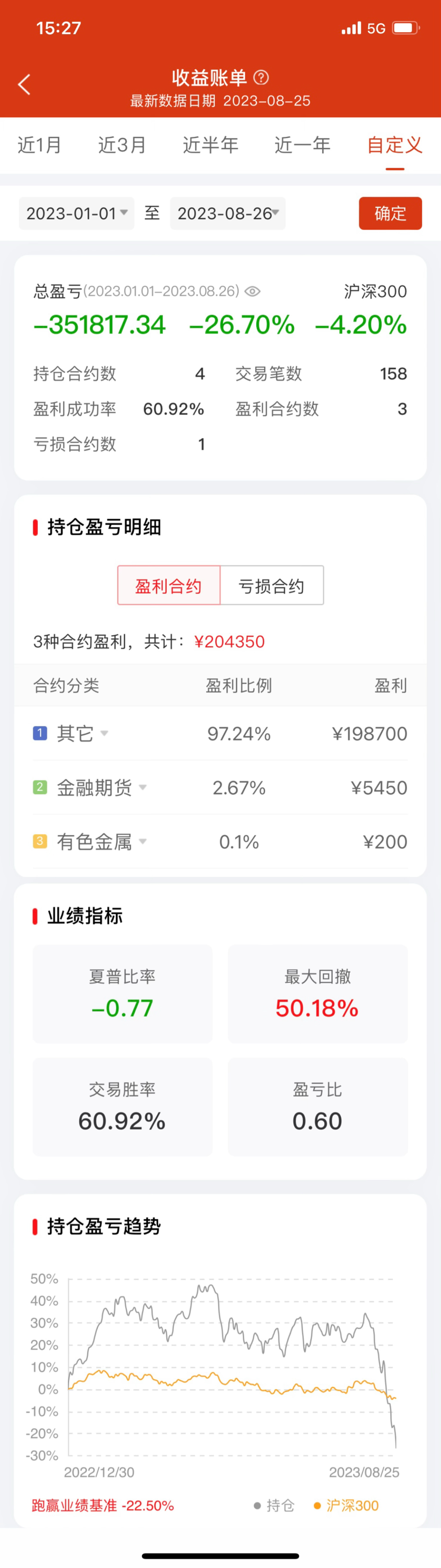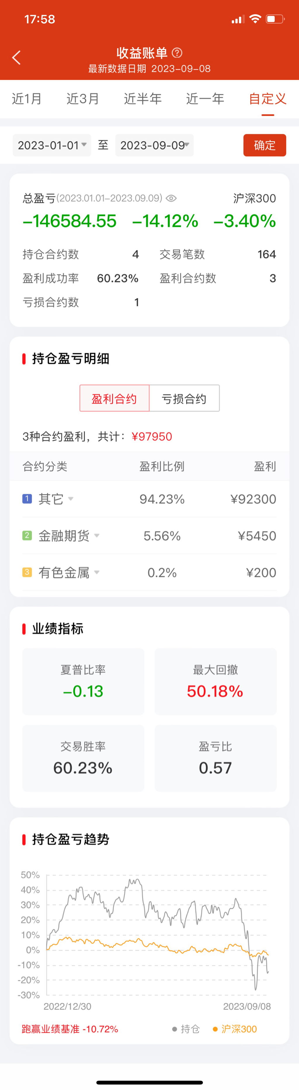 每次买沽前都是想着对冲指数下跌的影响,盈利或亏损后心态就不一样了,总是半途而废。