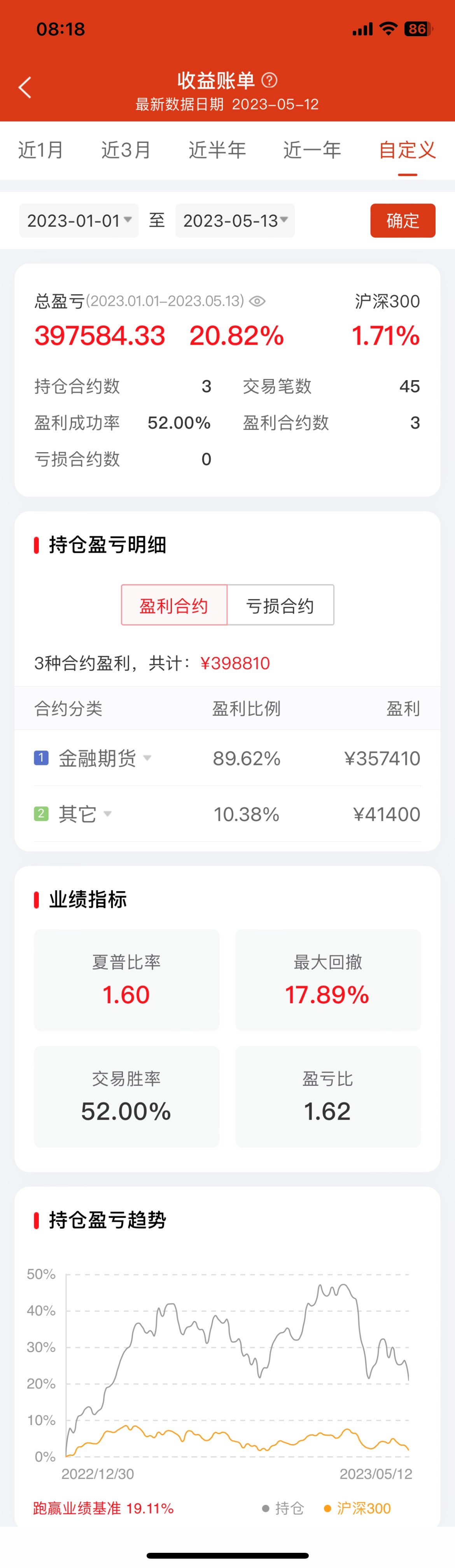 20w保证金一手,单月2000,每月平均1%收益,能够承受15%波动,年均12%收益率