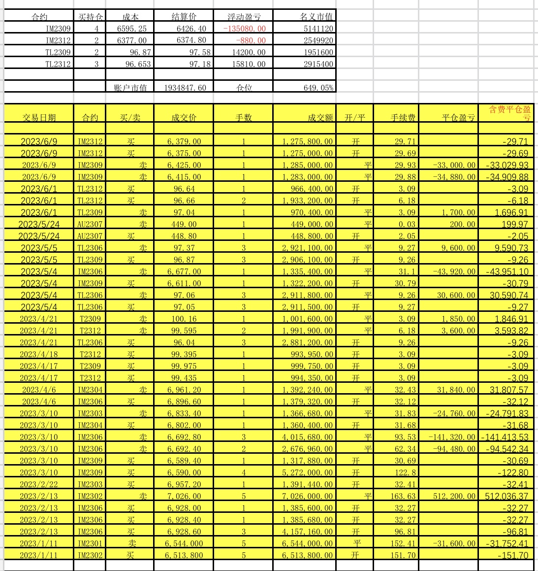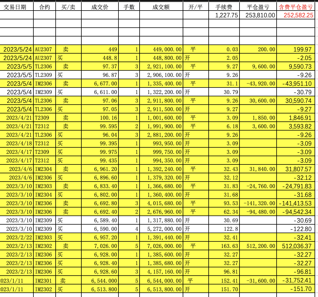 本周2304移2306,转出12920元。累计转出249320元。