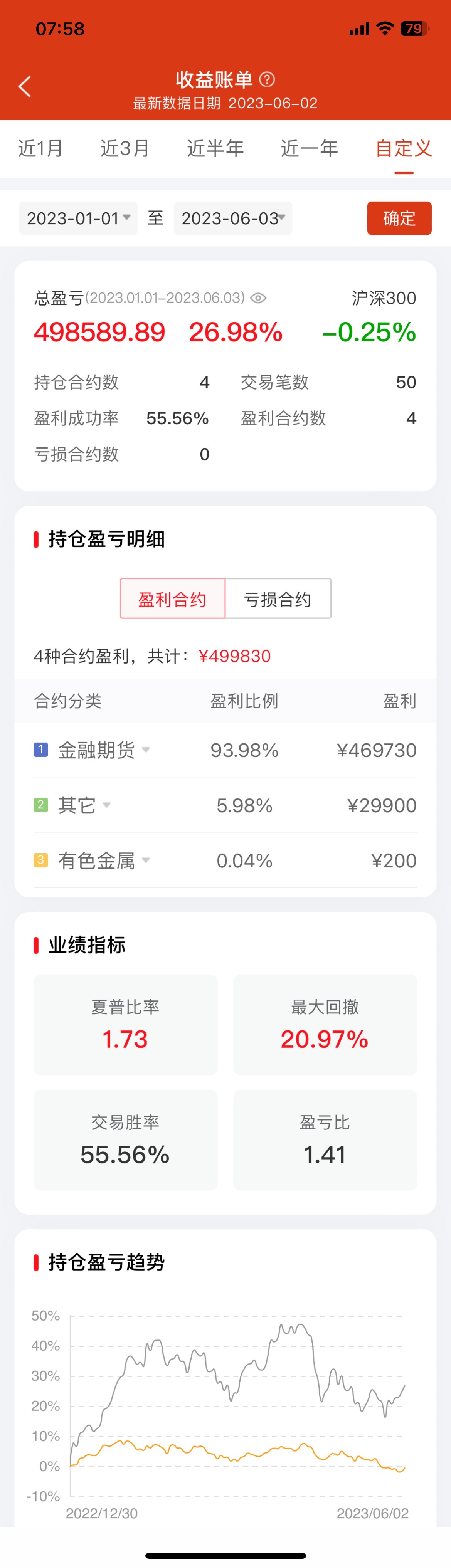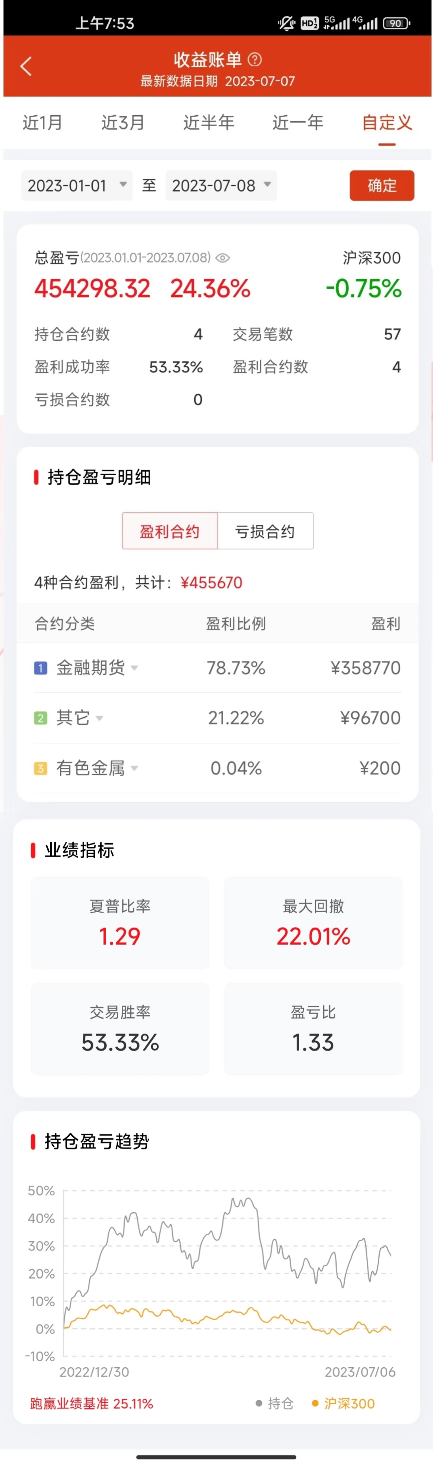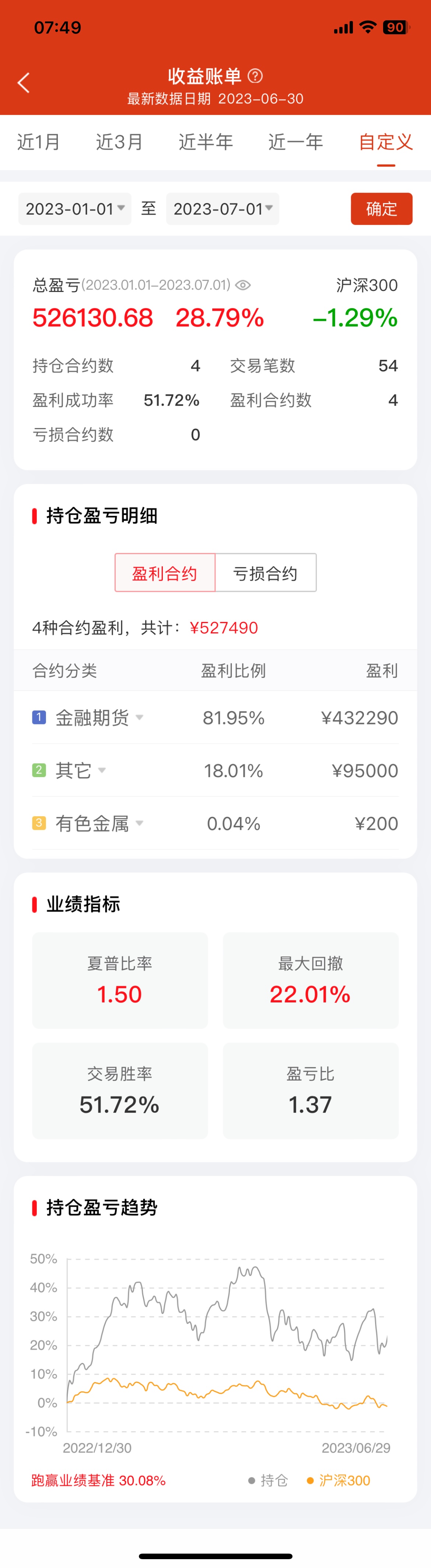 刚刚查了下今天凌晨买卖黄金期货的费率,买一张是2.05元,平是0.03元。不知这费率水平如何。与基金、股票相比,真是太便宜了。扣除手续费,今天凌晨失眠吃个泡面的功夫赚了197.92元。 今天上午看到一个帖子,说用ETF复制一个中国版的桥水全天候策略。就是股:债:黄金=2:6:2。如果用期货复制,好处太多了。2000万资产,可配3张IM,12张TL,9张au.,两千万的名义资产,只需200万不到的...我看了下2406合约一年的交割期才升水5块,十年才50块成本。