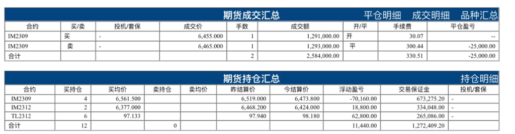 期货(目前是IM)