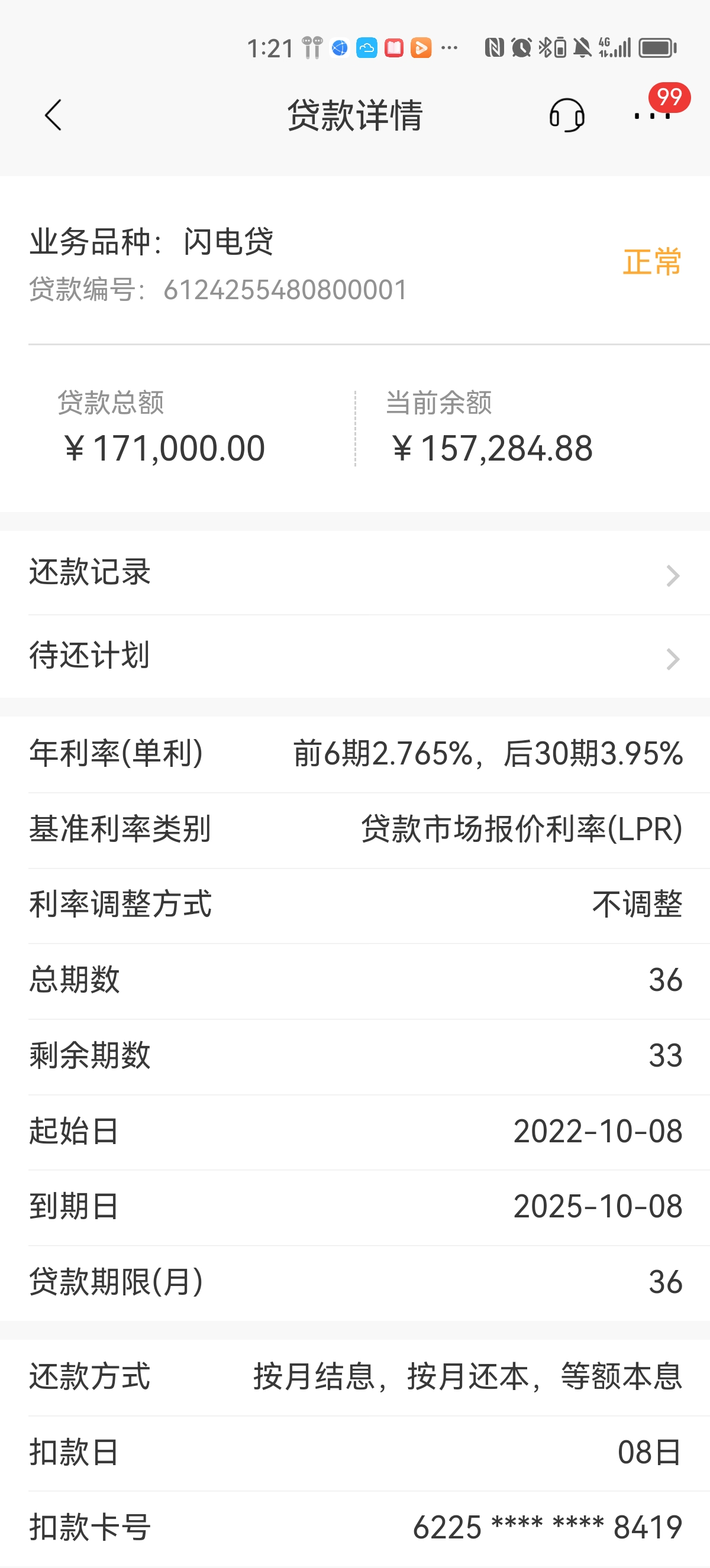 本来想贷出来去买3.95的成都银行的每三个月结算一次的理财,不过利息差太小,另外理财的收益恐怕也不是固定的,此外还要担心违规风险