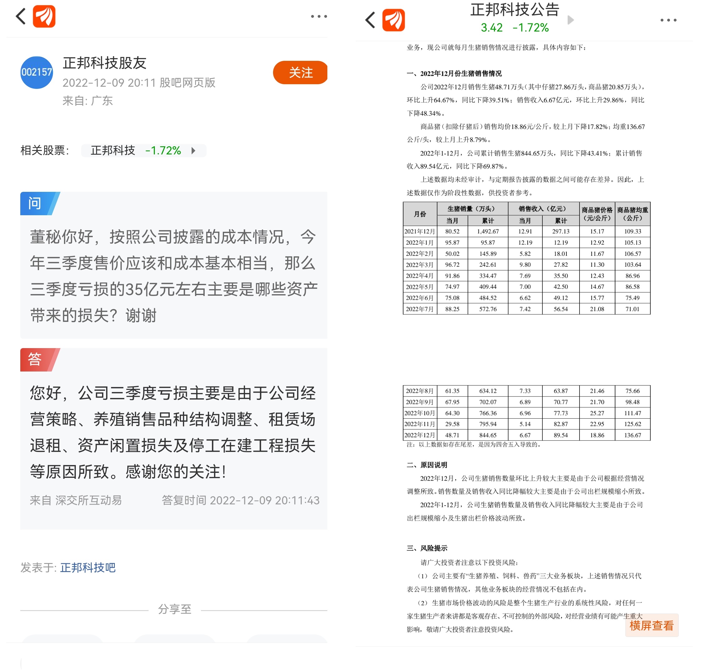 翻看正邦的2022年12月生猪销售情况,整个三季度的789三个月商品猪价格均超过21元/公斤,但是三季度单季度亏损依然超过30亿,这主要来自于前期扩张的后遗症。