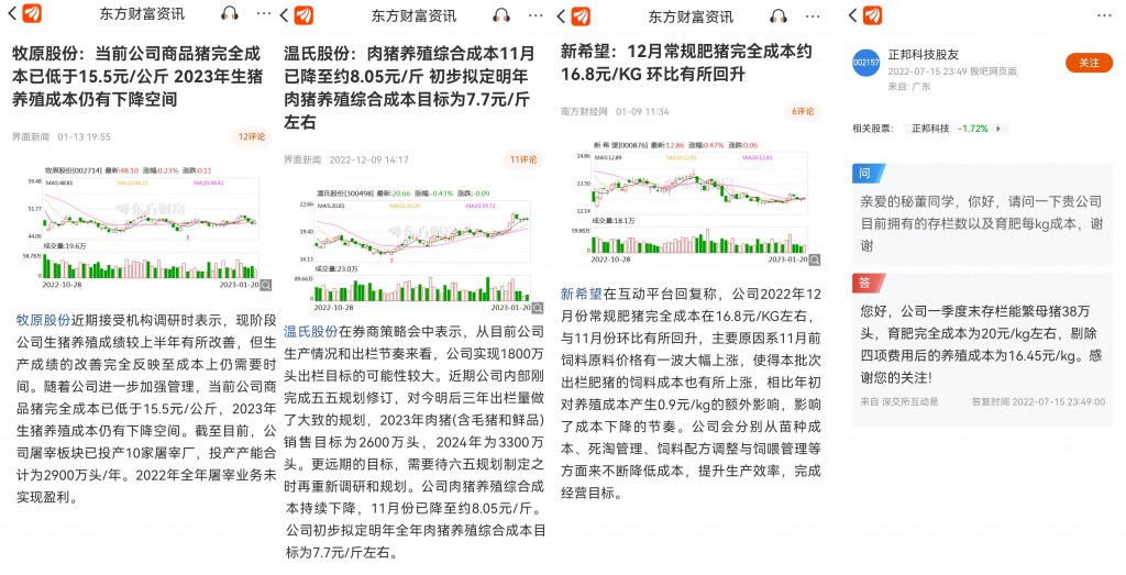 新希望答复:2022年12月份完全成本为16.8元/公斤,卡叔和公司沟通的时候,他们答复也有信心在未来进一步降低成本。