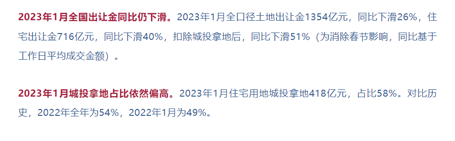 综上,虽然疫情管控全面解绑,但2023年开局依旧很“难”,年前降首付、降利率等密集利好政策叠加似乎并未在春节楼市激起太大的浪花,除了少数二三线城市房企仍保持较高的推盘热情之外,多数城市推盘积极性不高,核心一二线城市项目去化表现不及三四线城市。而三四线城市春节期间的放量更多是基于疫情管控全面解绑之后需求的延迟性释放,后期持续性存疑。基于此,我们认为,2023年行业规模的乐观预期便是止跌,供应稀缺、配套健全的改善盘仍将是成交主力,而随着房企利润空间的收窄,以价换量终究难以为继,整体房价也将进入持稳阶段。