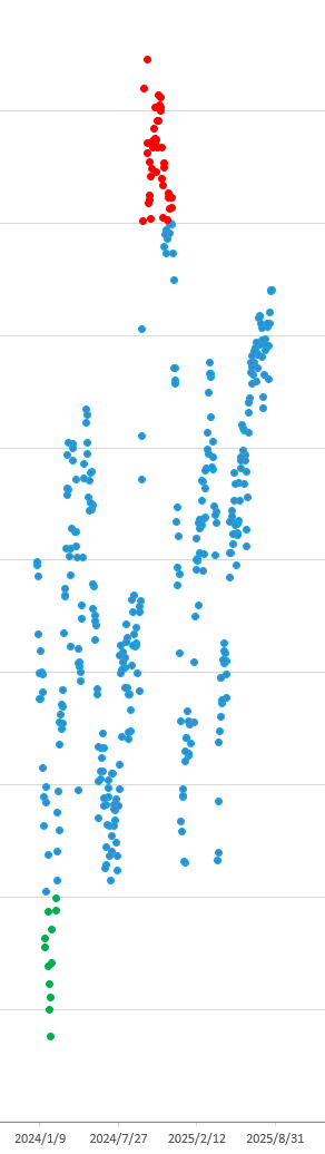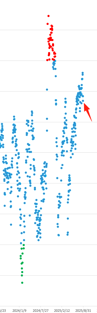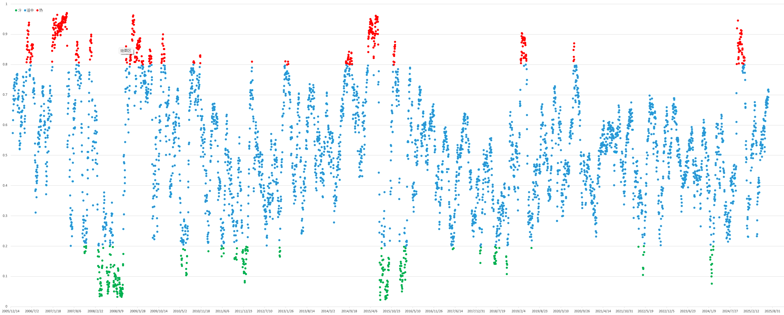 1、把整体市场想象成一个高压锅,情绪值是压力表的读数,从这个角度观察这一波上涨(从20250407开始)并没有到过危险地步。到目前为止,压力最大的那天(20250826)的读数也只有76.01,与去年10月8日的读数94.52相比不值一提(最新读数是45.8)。