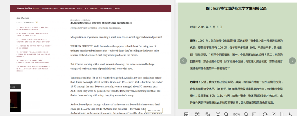 补充一下我上面的回帖。我发的那段英文是伯克希尔2001股东大会的问答,巴菲特回答一位股东的提问。见下图左05年在堪萨斯大学的讲话见下图右,但意思都是一样明确的,就是说他是说自己历史上做到了这一点,而非是假设。