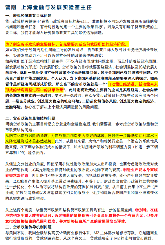 曾刚:货币政策目标、总量、结构和传导机制问题