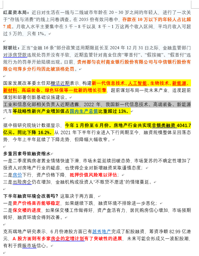 证券时报:继7月重点城市新增商品住宅供应创5年同期新低后,8月供应有所回升。据机构调查,28个重点城市8月预计新增商品住宅供应面积1051万平方米,环比上升25%。从供应结构各产品档次分布来看,改善占比高达六成。业内人士认为,在供应放量的情况下叠加政策刺激,或将在一定程度上提升居民购房信心及购买力,在这背景下,8月成交有望止跌企稳,环比持平或微增。