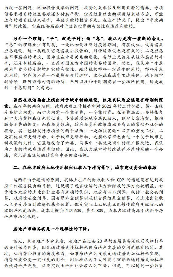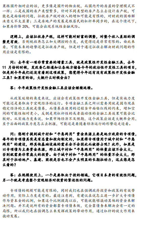 总体而言,我想起周小川行长的一句话,逆周期调控是必要的,但还是要强调一个理念——寓改革于调控之中。“子弹”是要打的。