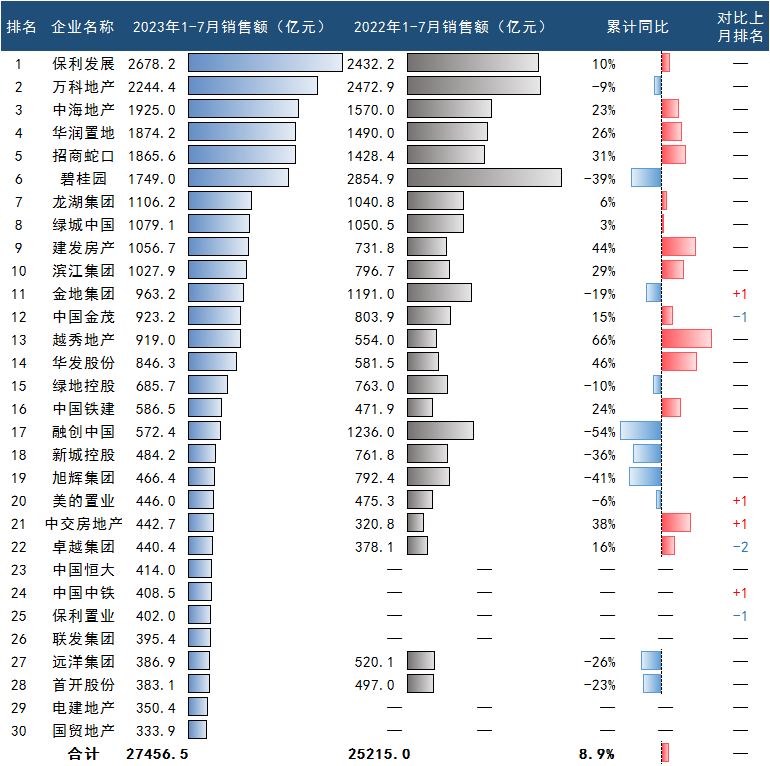 住建部:保交楼专项借款项目总体复工率接近100%,累计已完成住房交付超过165万套,首批专项借款项目住房交付率超过60%。1-6月,全国房屋竣工面积同比增长19.0%。竣工面积明显增长是因为保交楼工作顺利推进,带动房地产开发项目竣工进度加快。
