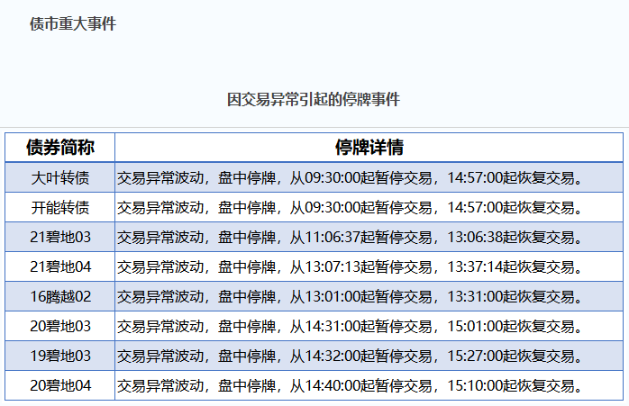 【碧桂园旗下境内债大跌再现临停潮】财联社8月8日电,碧桂园旗下境内债大跌再现临停潮,“19碧地03“跌超31%,”16腾越02“跌超27%,”21碧地03“跌超24%,”20碧地03“跌超21%,均盘中临停。此外,”21碧地04“等多只债券跌超10%。